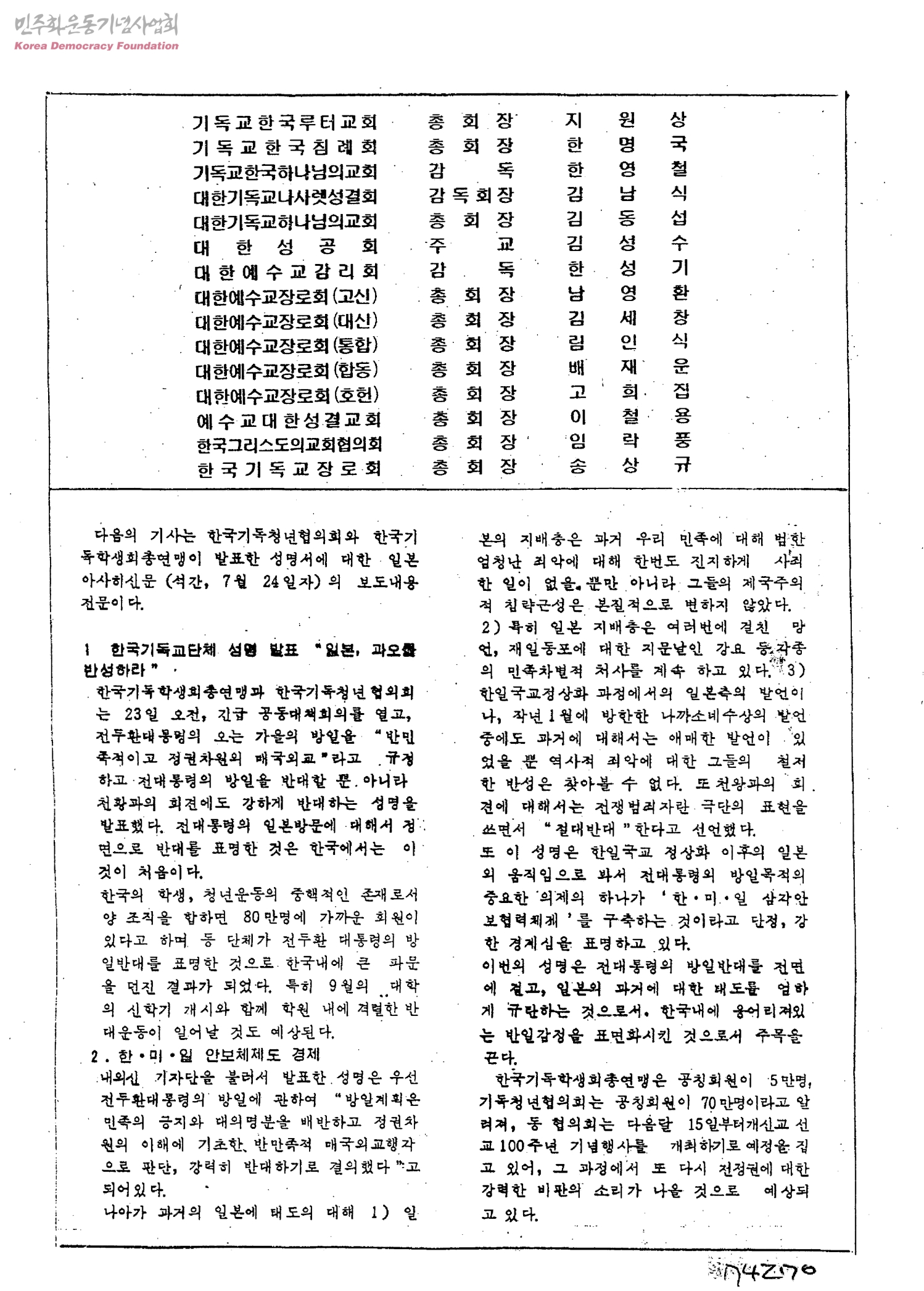 [한국기독청년협의회와 한국기독학생총연맹이 발표한 성명서]