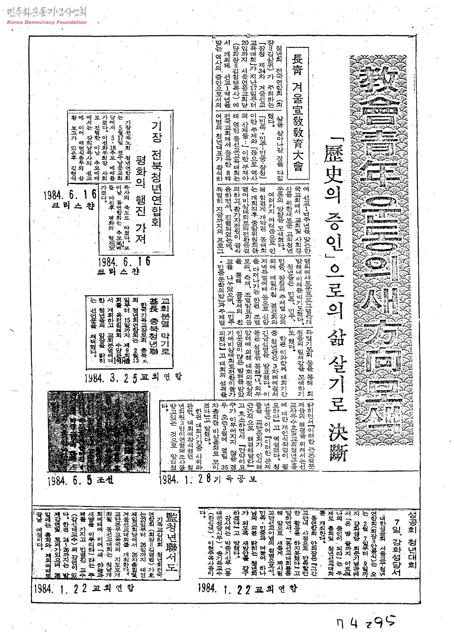 [신문스크랩]기독청년 운동의 새 방향모색 외 기독교 관련 기사