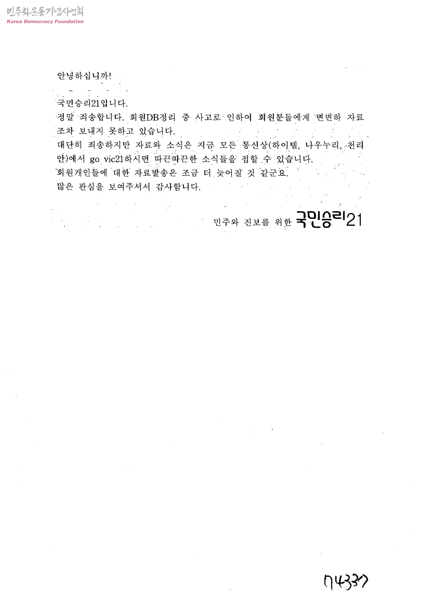 - 민주와진보를위한국민승리21