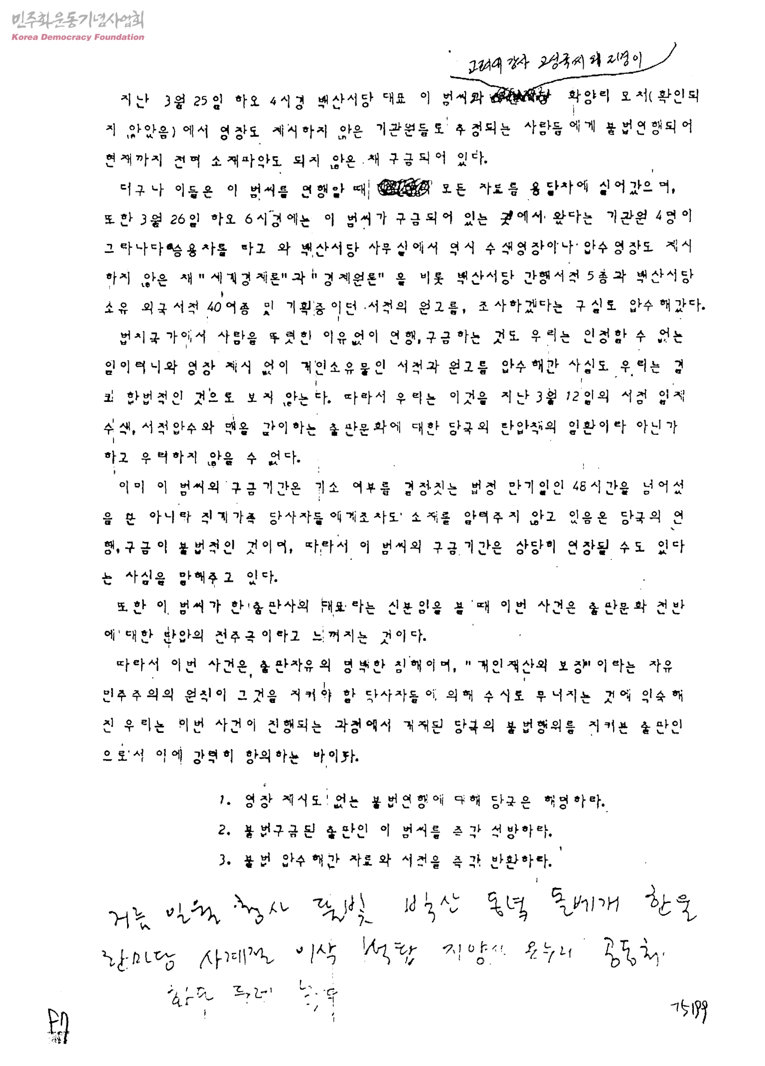 [박산서당 대표 이범씨와 고려대 강사 고성국씨 외 2명의 불법연행에 대해]