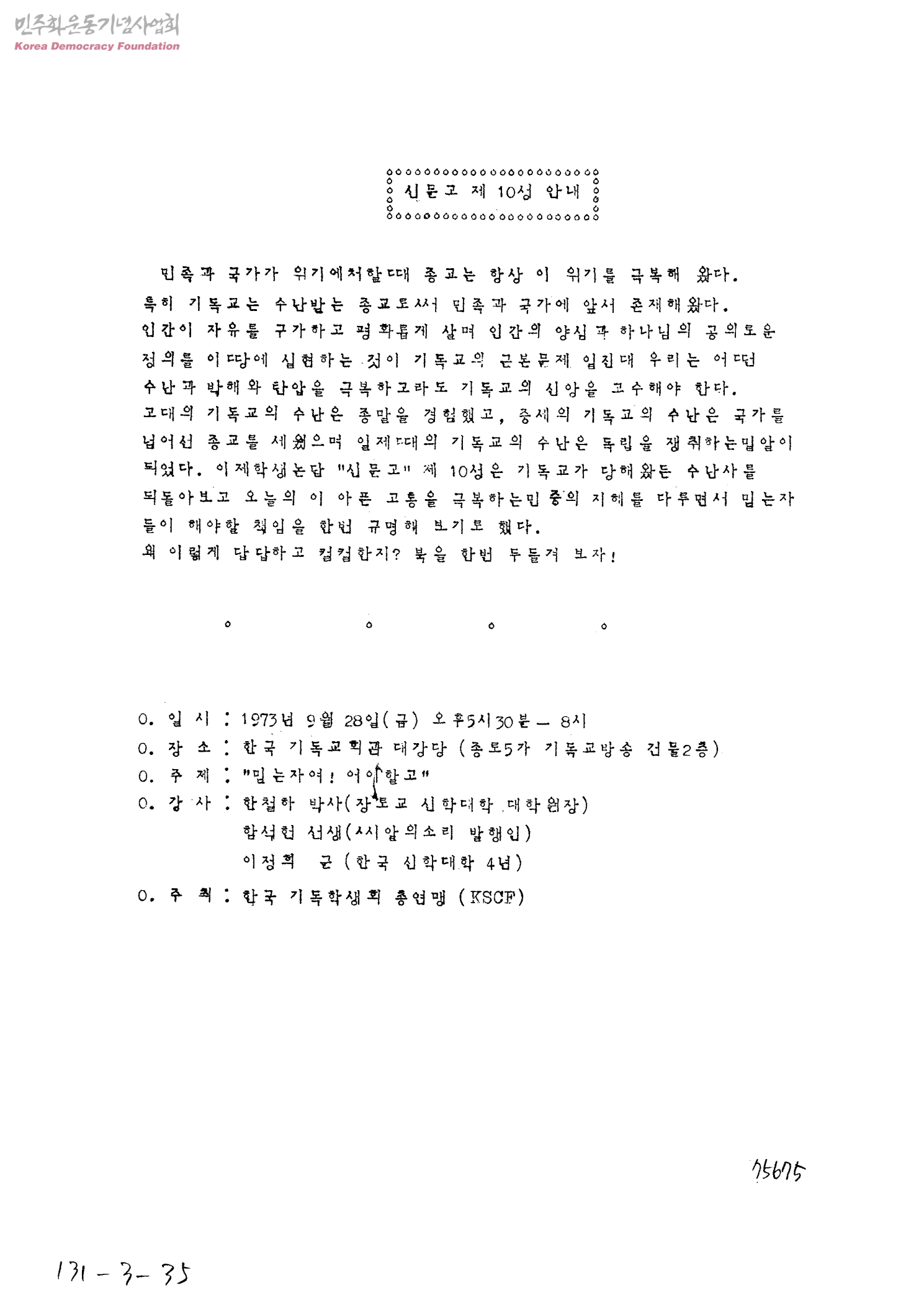 - 한국기독학생회총연맹(Korea Student Christian Federation)