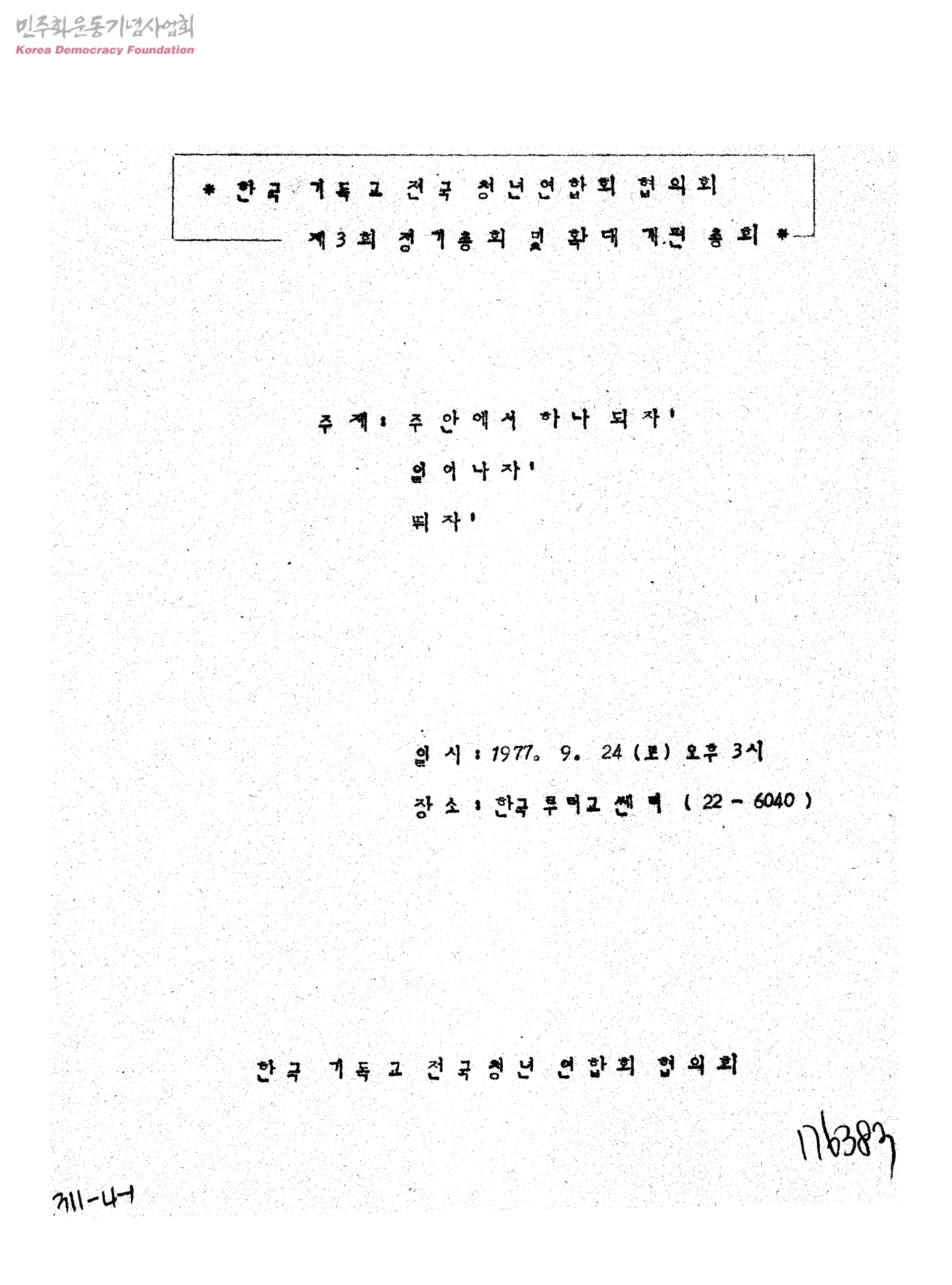한국 기독교 전국 청년연합회 협의회 제3회 정기총회 및 확대 개편 총회