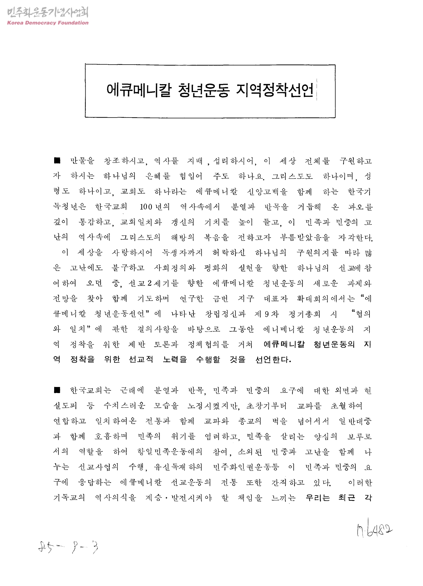 에큐메니칼 청년운동 지역정착선언