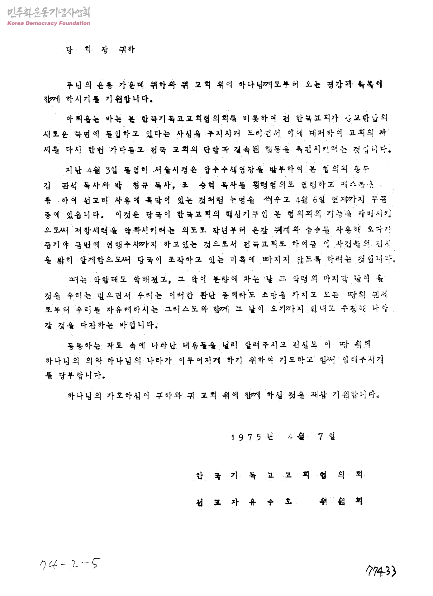 [김관석목사, 박형규목사, 조승혁목사, 권호경목사 횡령혐의 누명 관련]