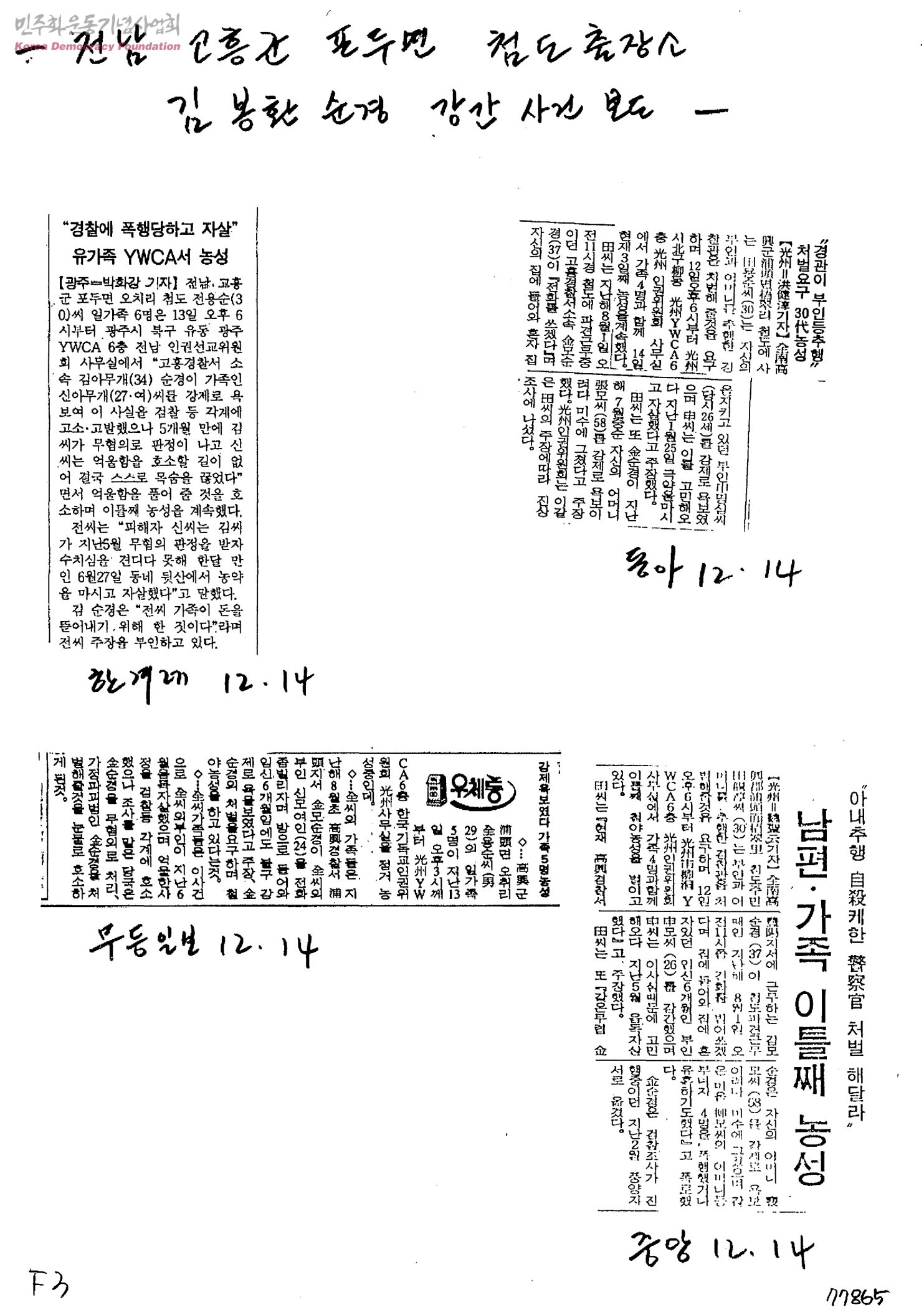 [신문스크랩]전남 고흥군 포두면 첨도출장소 김봉환 순경 강간 사건 보도