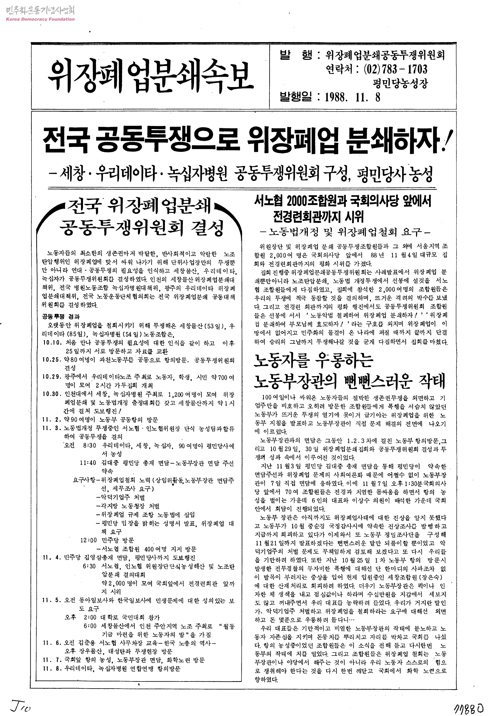 위장폐업분쇄투쟁속보-전국 공동투쟁으로 위장폐업 분쇄하자!
