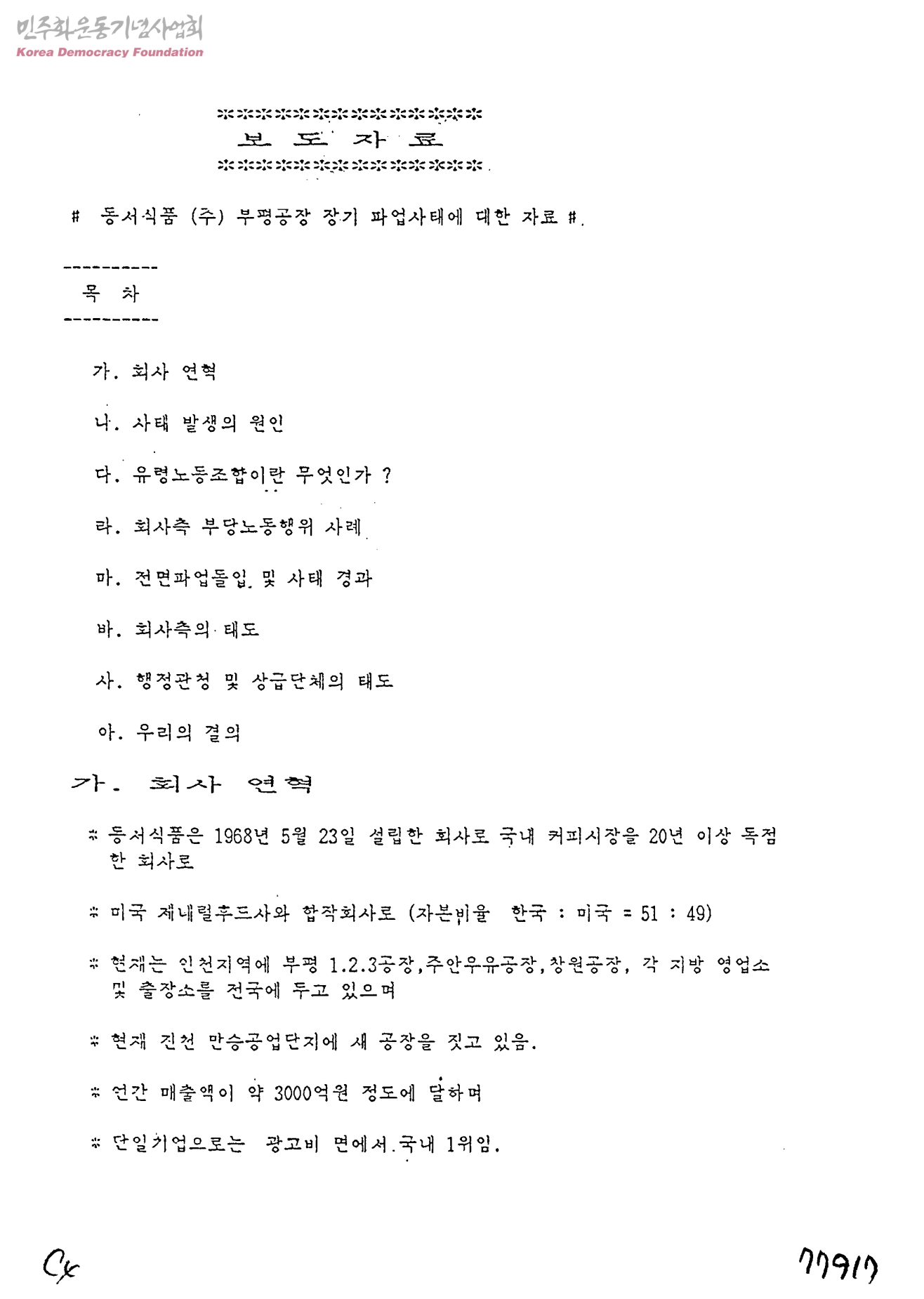 보도자료-동서식품㈜부평공장 장기 파업사태에 대한 자료