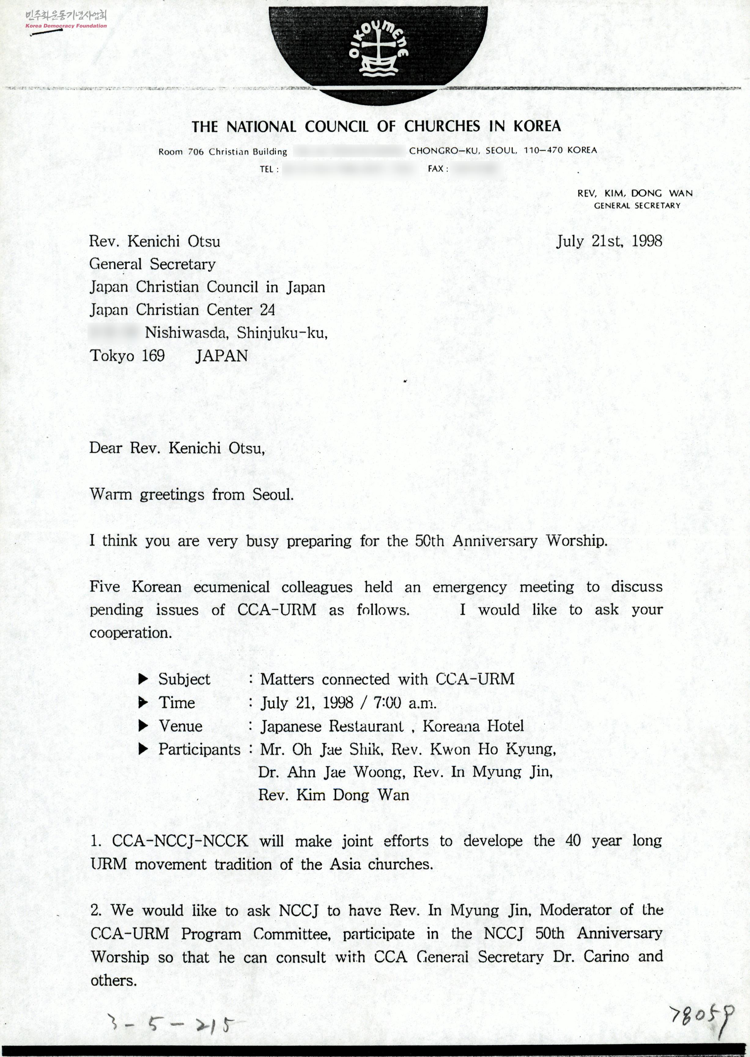 - 김동완(General Secretary. The National Council of Churches in korea)