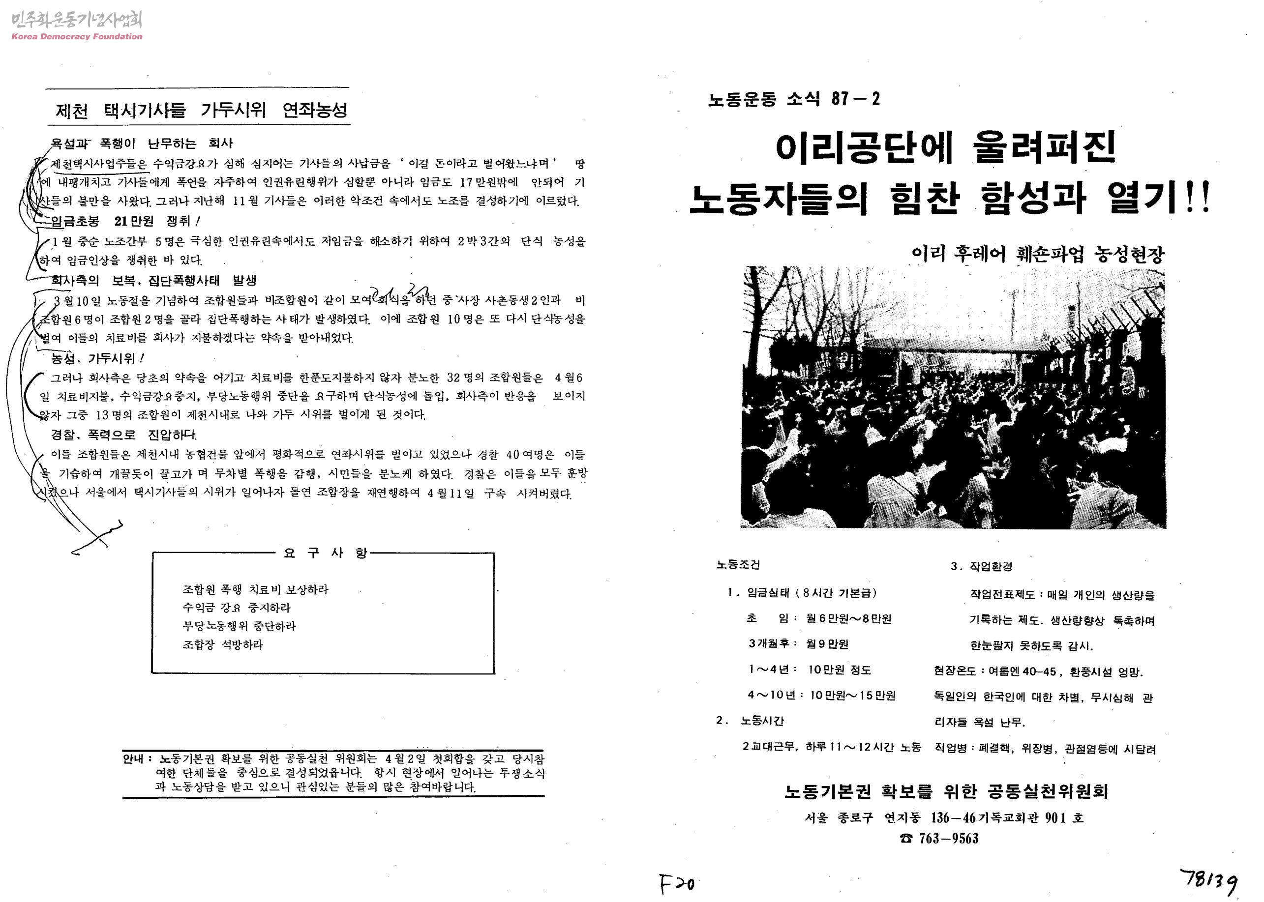 노동운동 소식 87-2이리공단에 울려퍼진 노동자들의 힘찬 함성과 열기!!