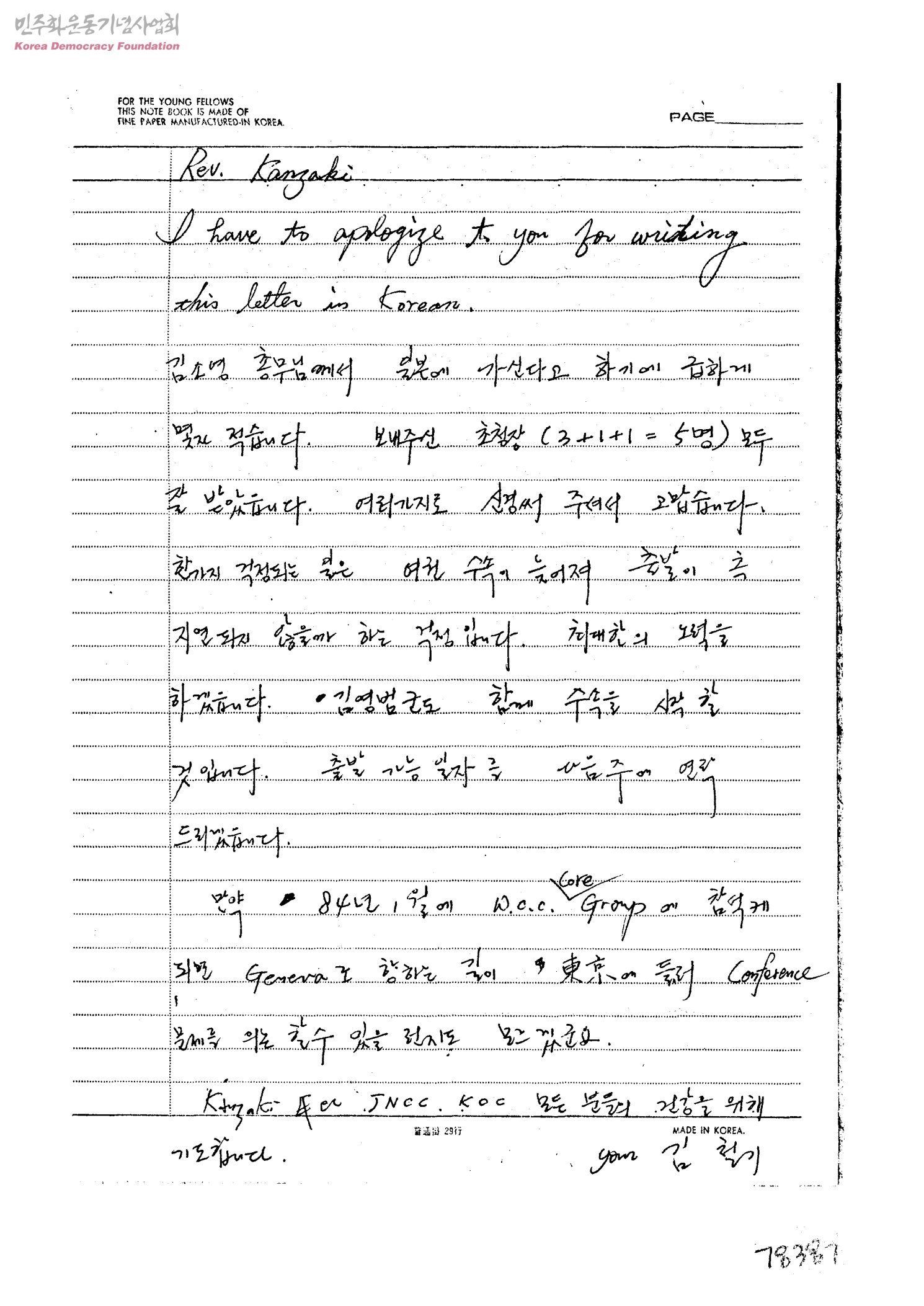 [김철기씨가 Kanzaki씨에게 보내는 수신]
