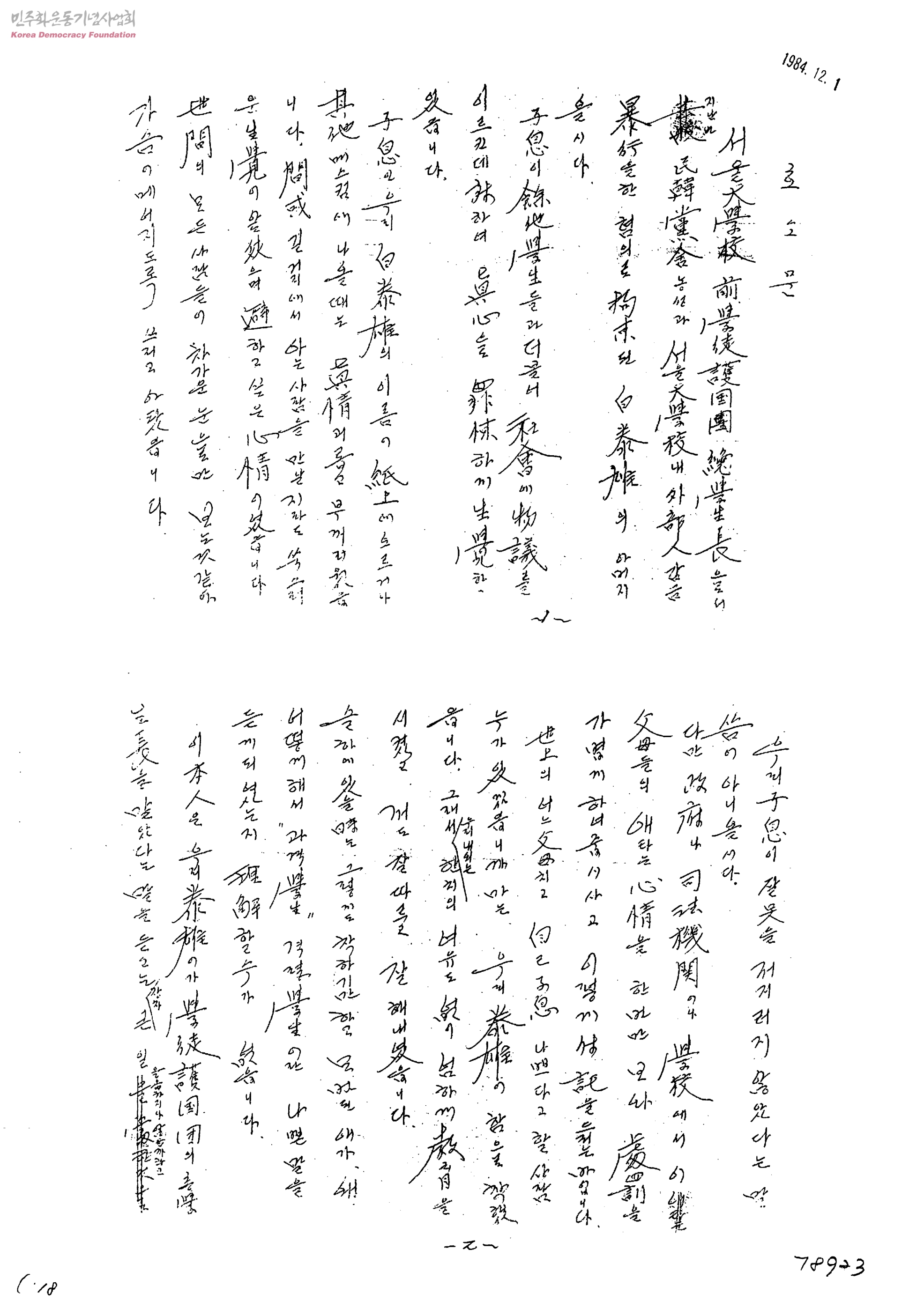 호소문[구속된 서울대학교생 白泰雄군의 아버지가 선처를 호소하는 글]