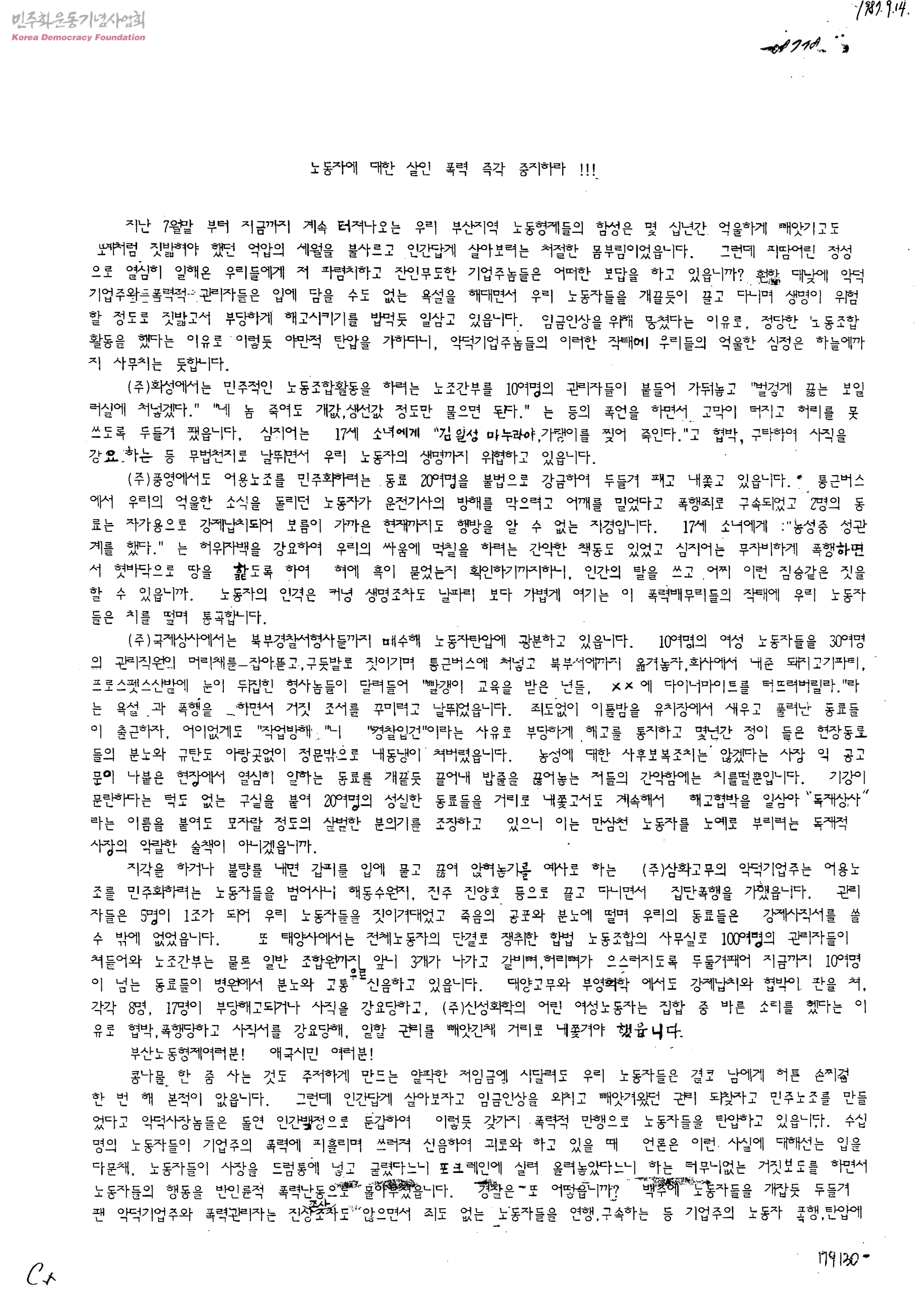 노동자에 대한 살인 폭력 즉각 중지하라!!