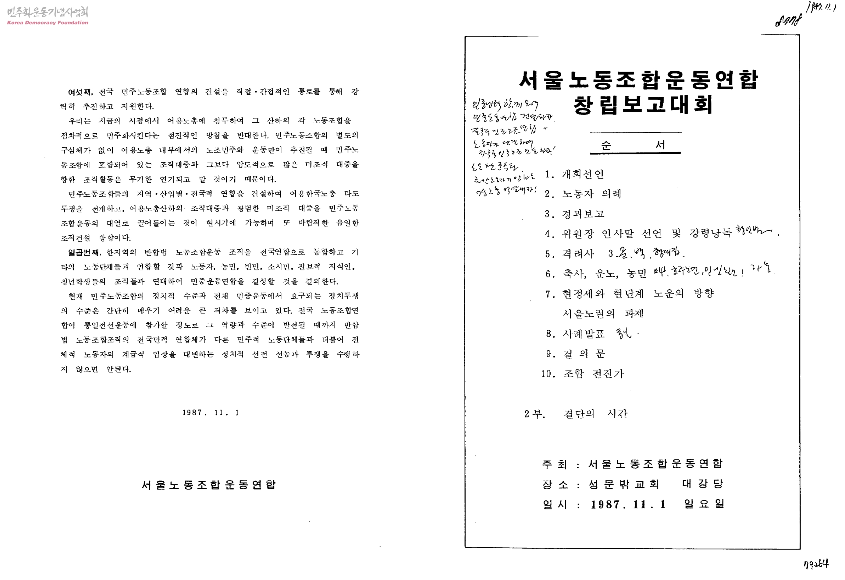서울노동조합운동연합창립보고대회
