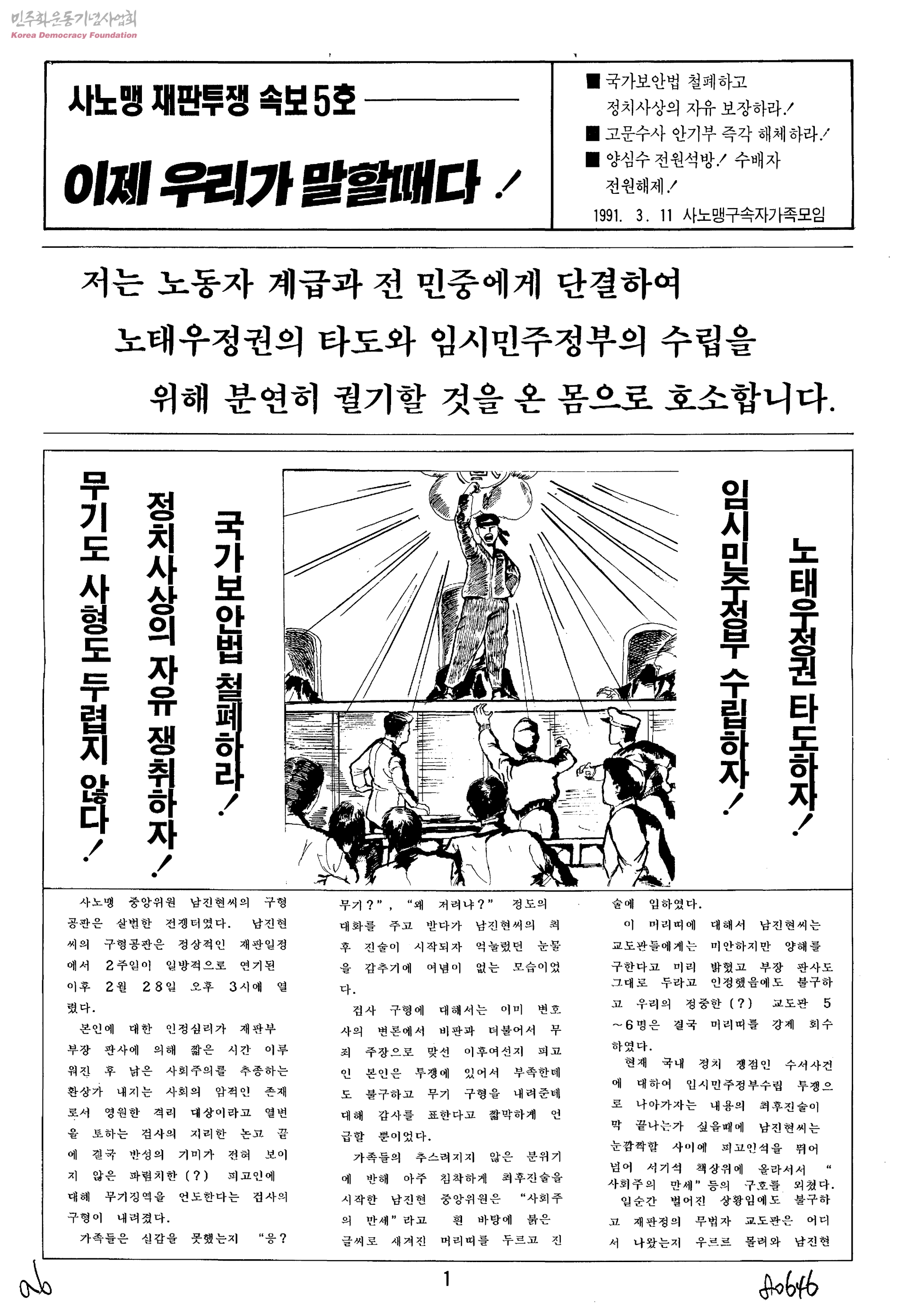 사노맹 재판투쟁 속보5호-이제 우리가 말할때다!
