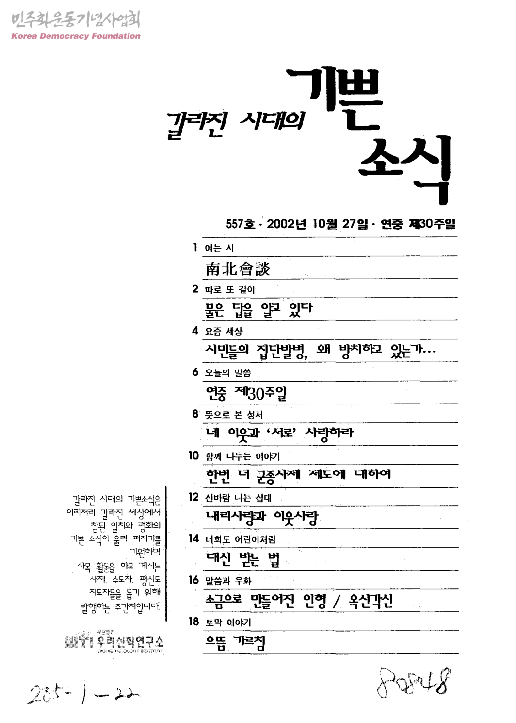 갈라진 시대의 기쁜 소식 557호
