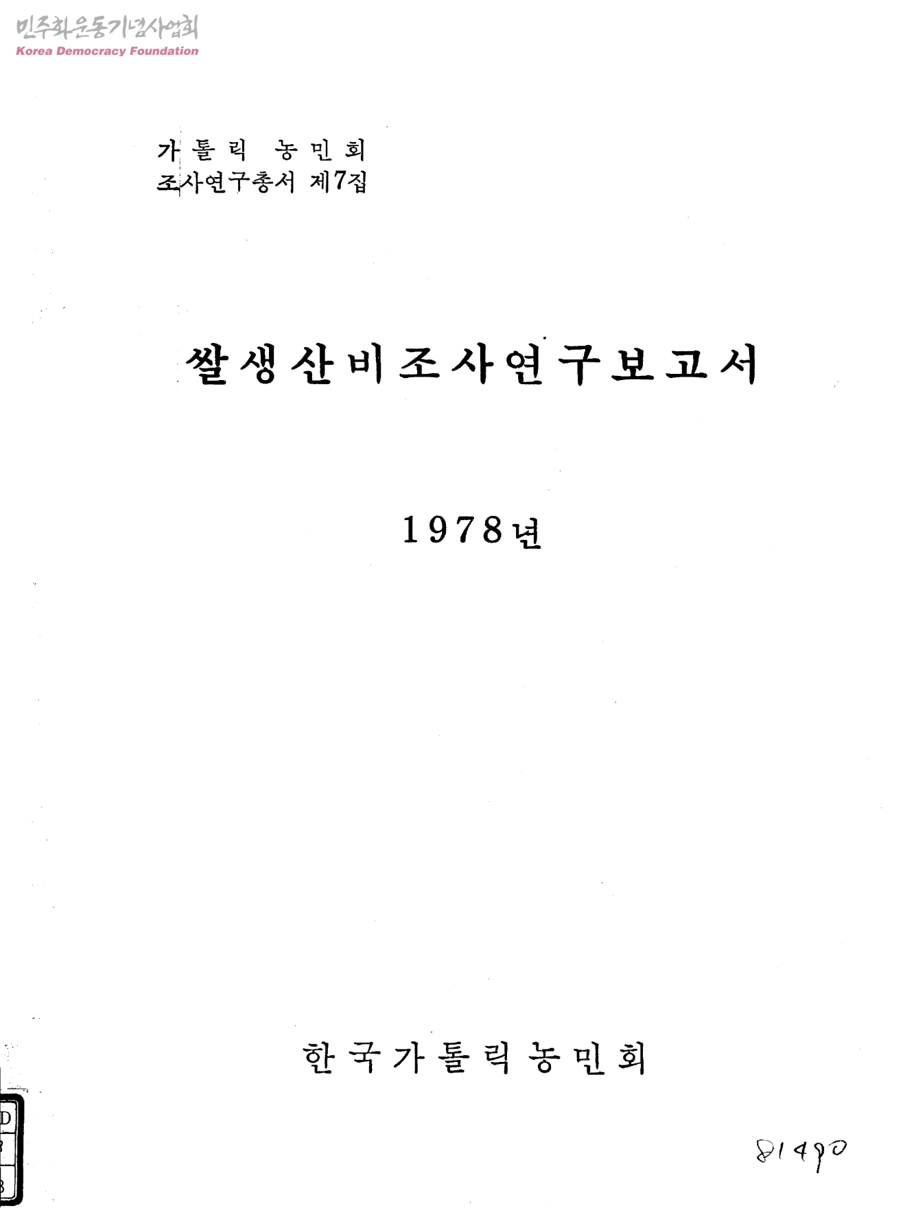 쌀생산비조사연구보고서 제7집