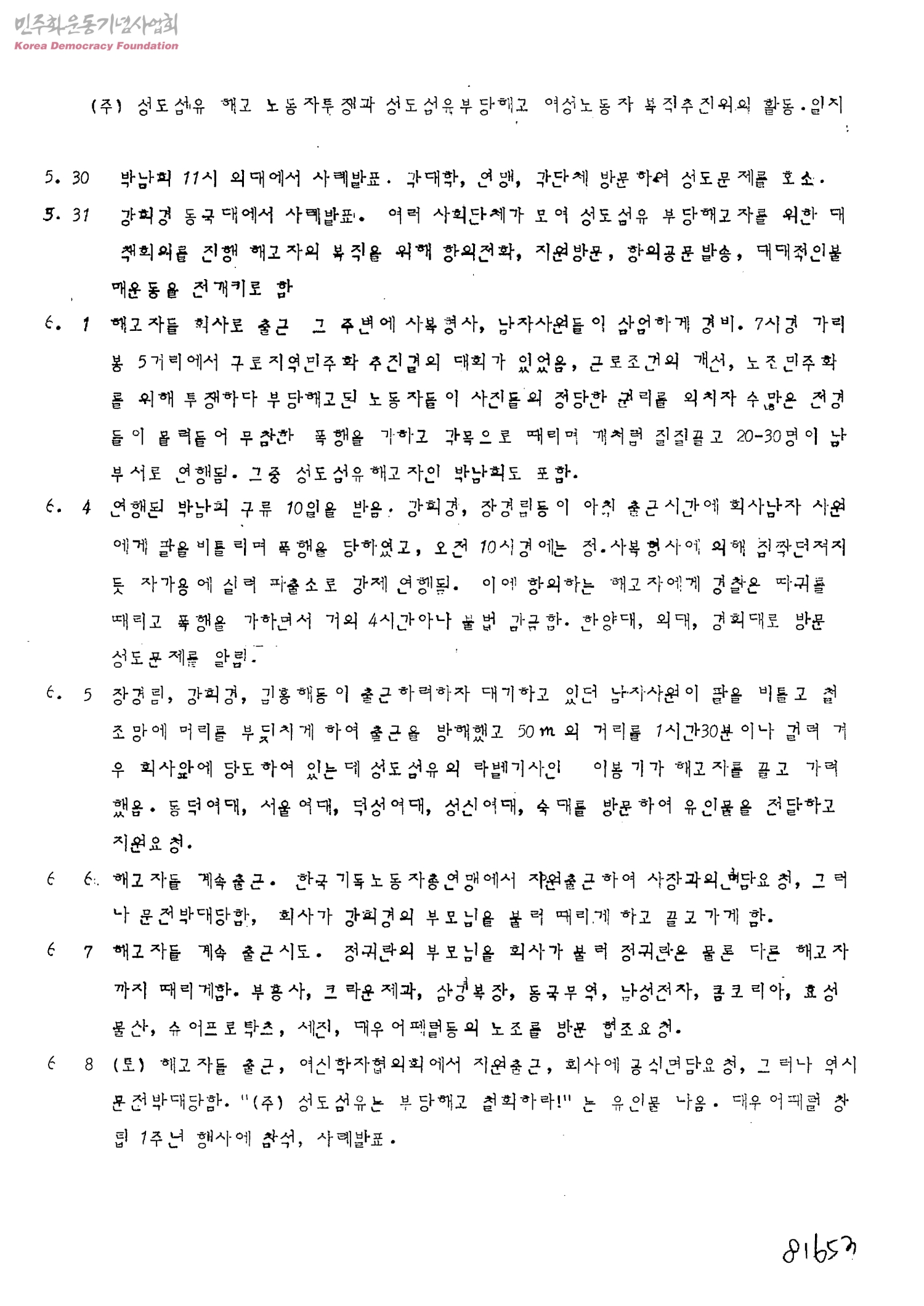 ㈜성도섬유 해고 노동자투쟁과 성도섬유부당해고 여성노동자 복직추진위의 활동·일지