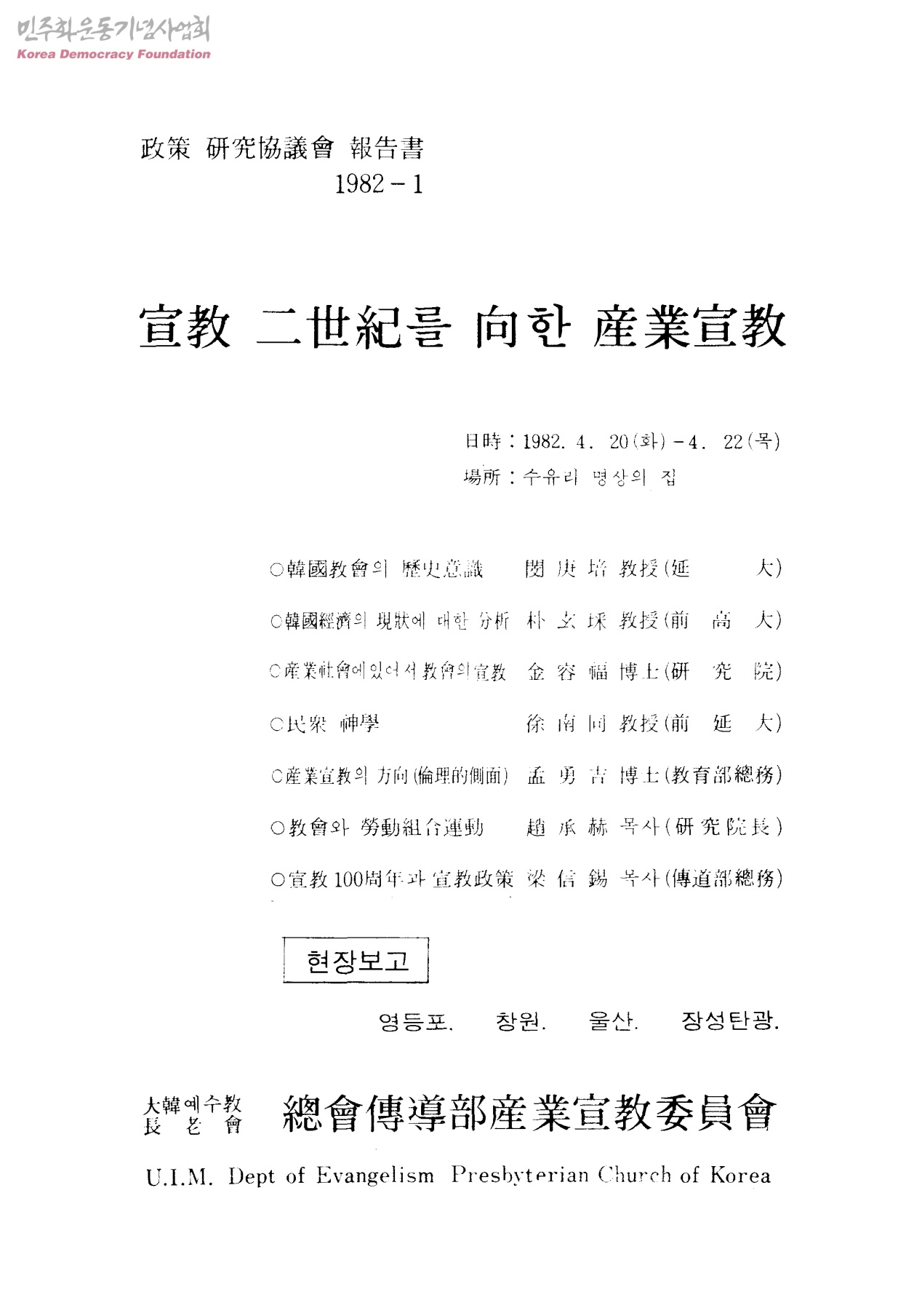 - 大韓예수敎長老會總會傳導部産業宣敎委員會