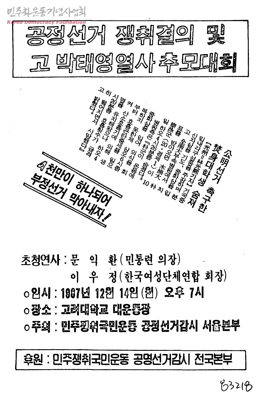 공정선거 쟁취결의 및 고 박태영열사 추모대회