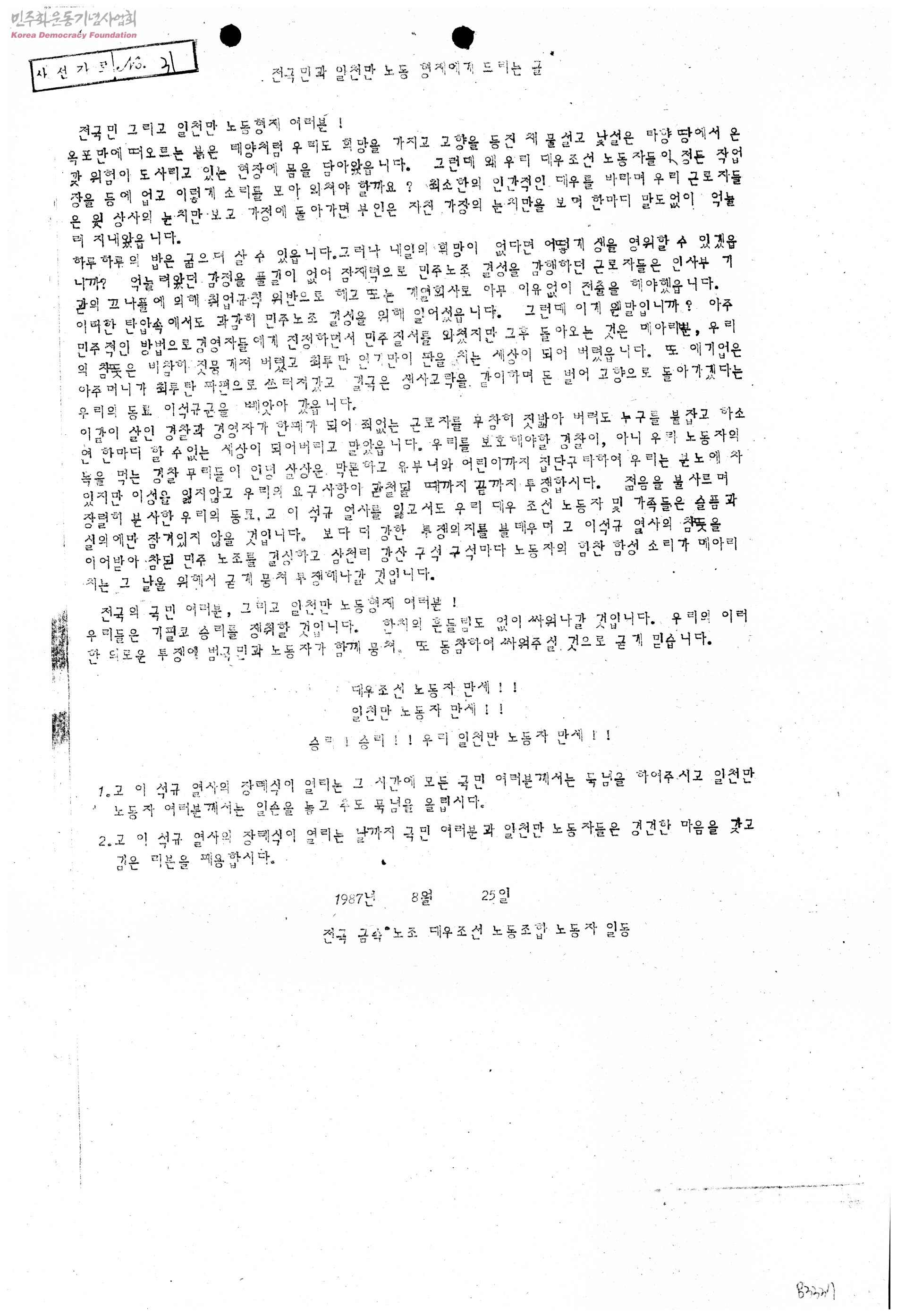- 생산자 및 기증자가 ‘박용수’인 사진의 사용은 구매신청을 클릭하여 직접 사진 구매 신청을 하실 수 있습니다. 생산자 및 기증자가 ‘경향신문사’인 사진의 사용은 경향신문사 담당자(02-3701-1635)를 통해 구매하실 수 있습니다. 그 외의 생산자 및 기증자는 민주화운동기념사업회 사료관 담당자( hyunchaek@kdemo.or.kr / 02-6440-8961 )에 문의바랍니다.