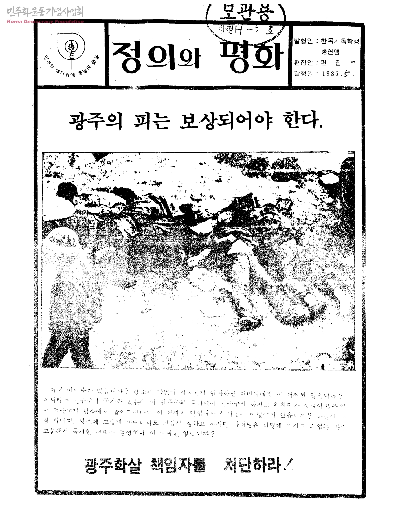 정의와 평화-광주의 피는 보상되어야 한다.