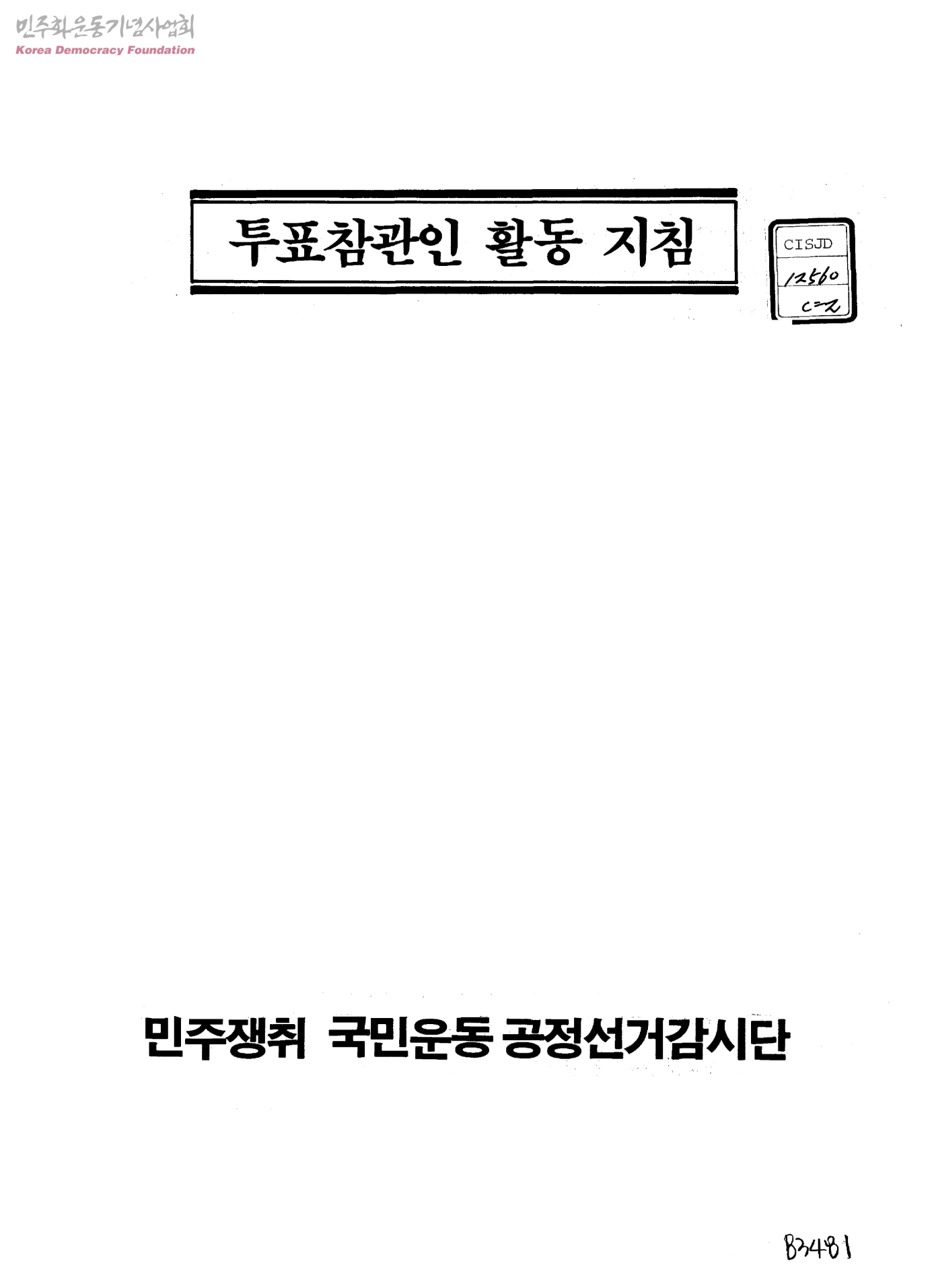 투표참관인 활동 지침[제13대 대통령 선거 관련]