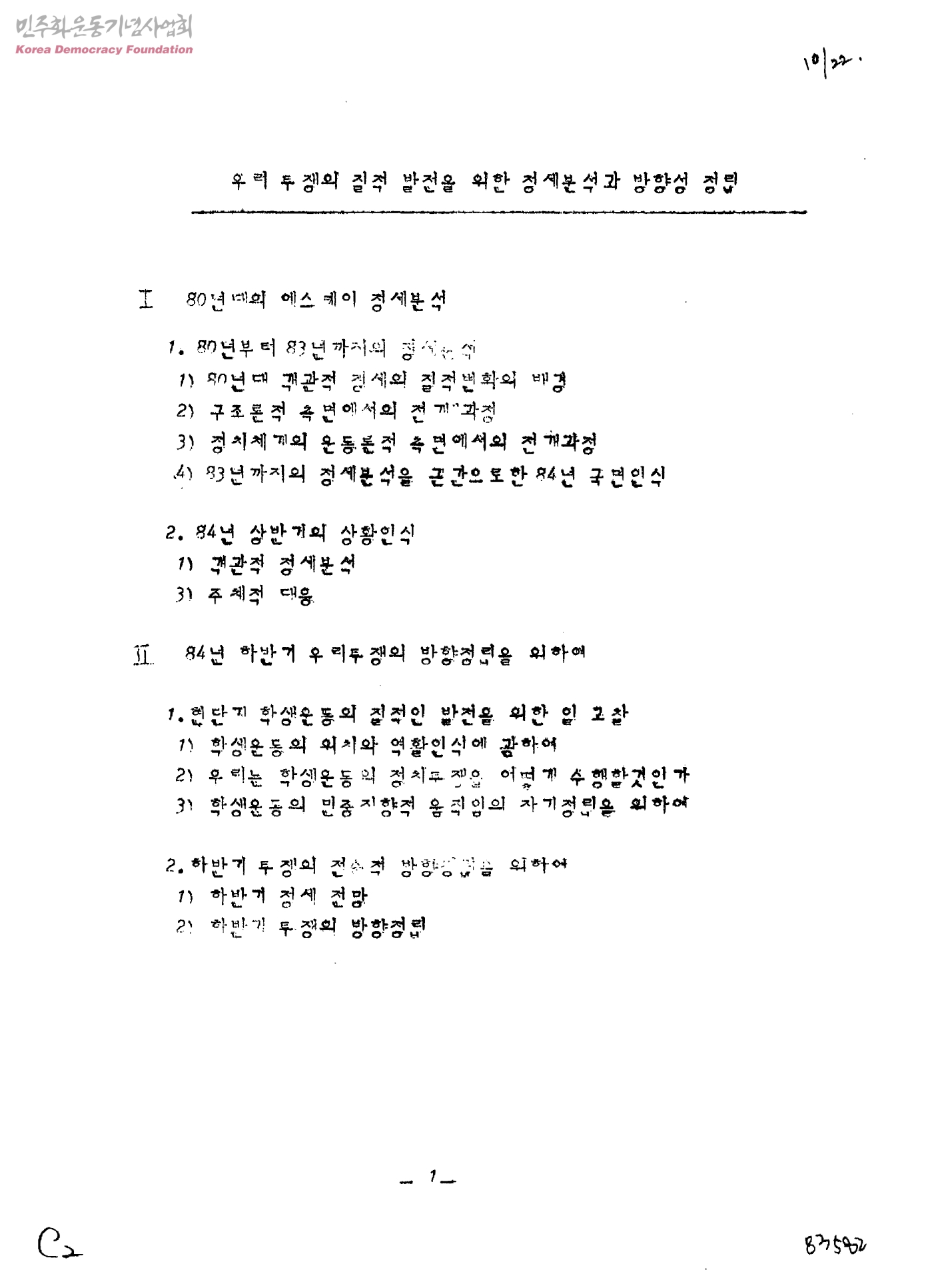 우리 투쟁의 질적 발전을 위한 정세분석과 방향성 정립