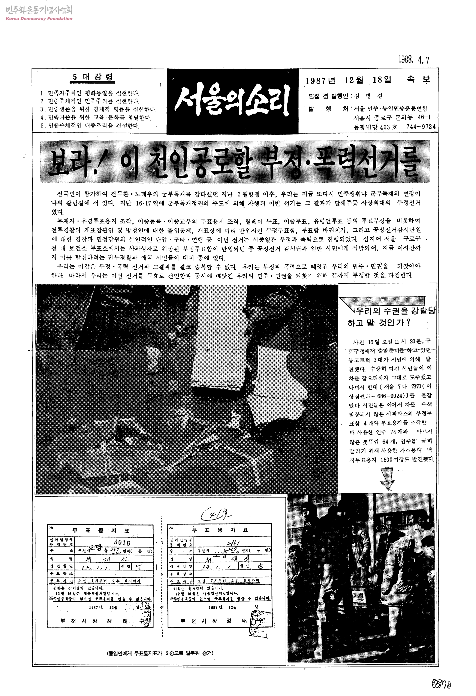 서울의소리 속보-보라! 이 천인공로할 부정.폭력선거를