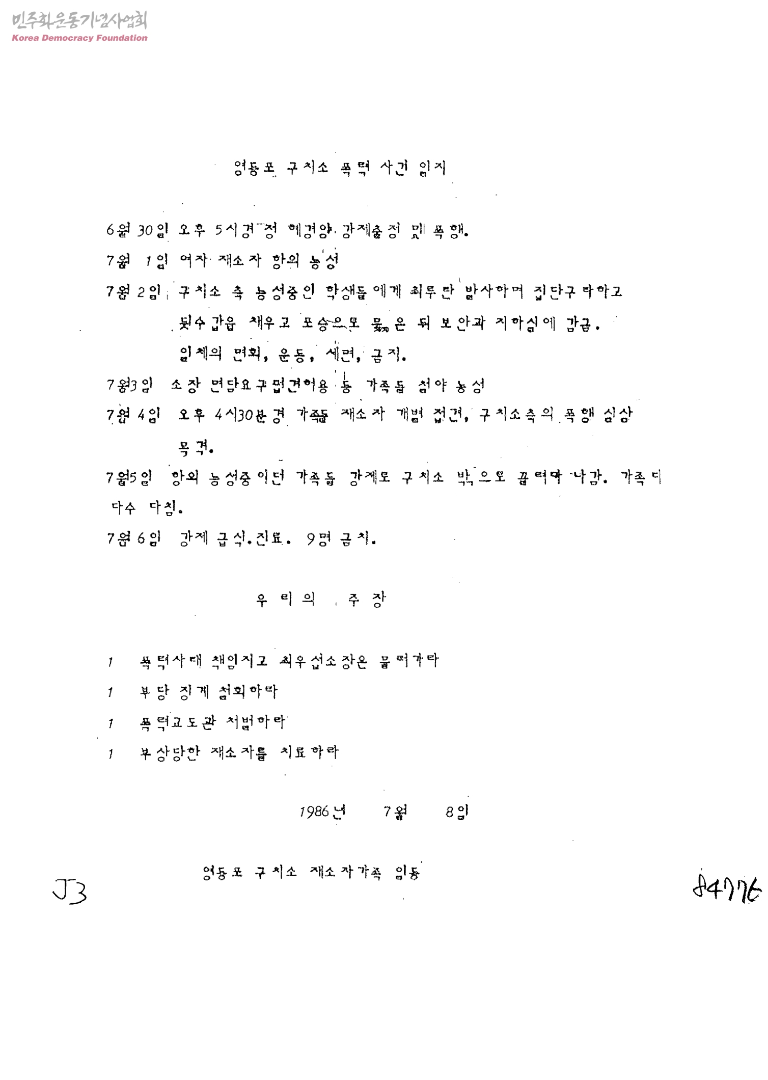 영등포 구치소 폭력 사건 일지