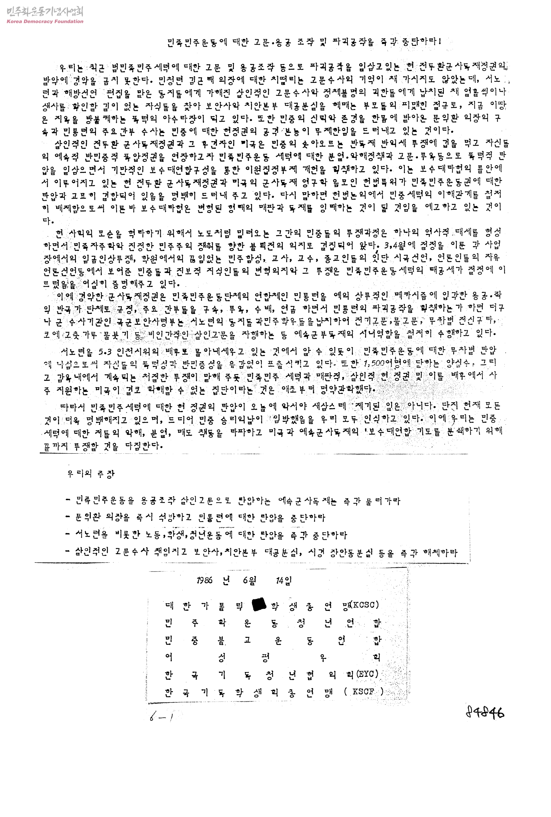 민족민주운동에 대한 고문ㆍ용공조작 및 파괴공작을 즉각 중단하라