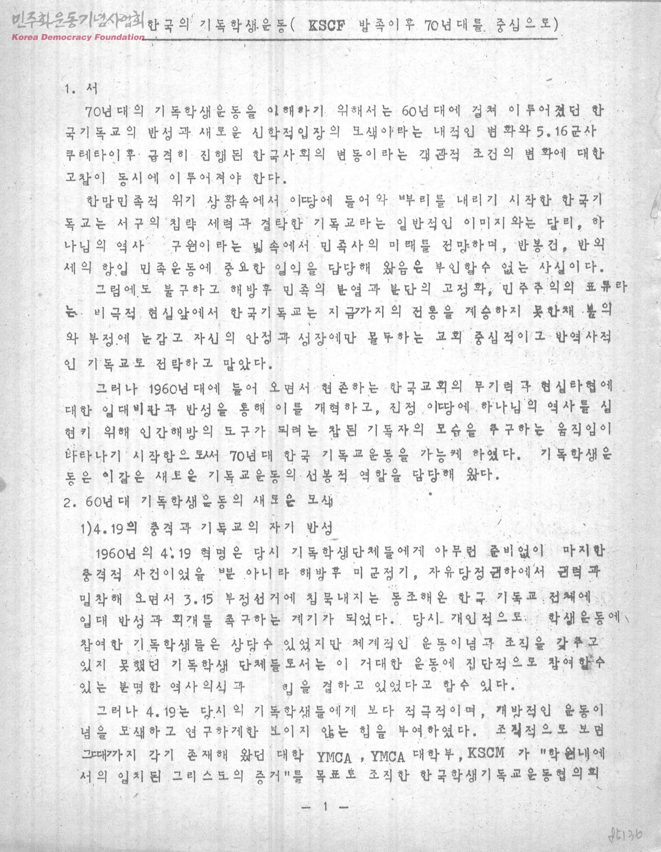 - 1.서 2.60년대 기독학생운동의 새로운 모색 3.1970년대의 기독학생 운동