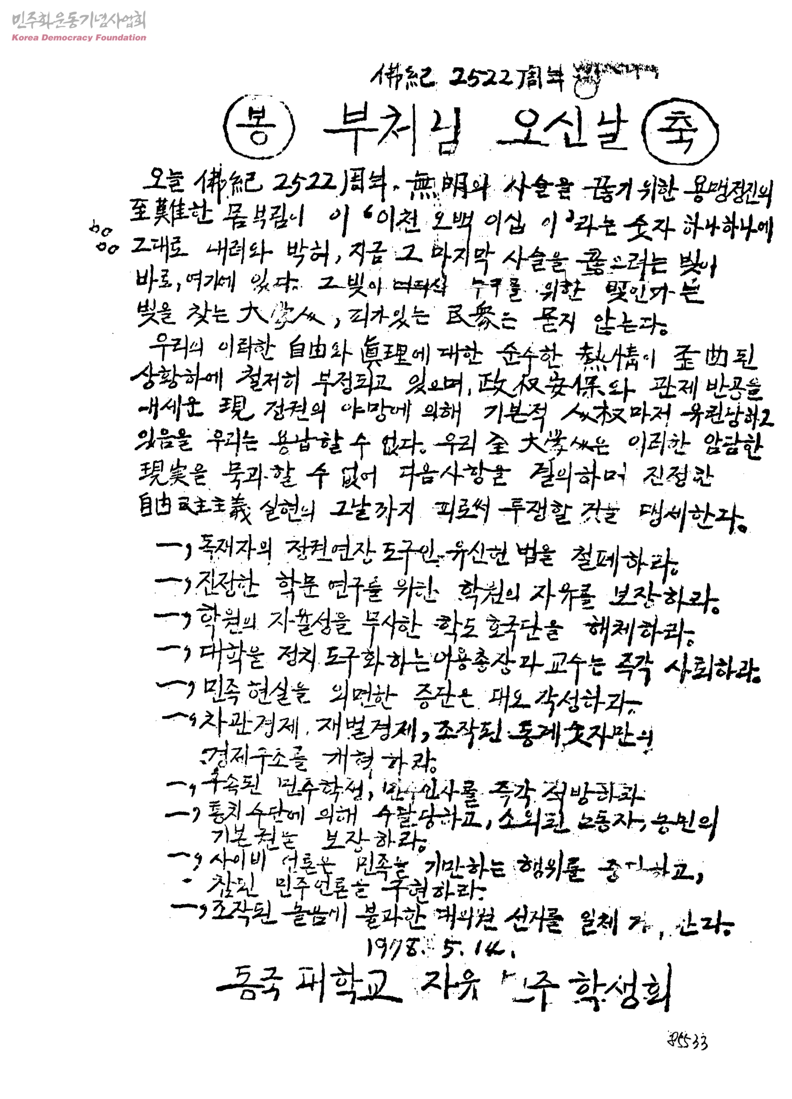 - 생산자 및 기증자가 ‘박용수’인 사진의 사용은 구매신청을 클릭하여 직접 사진 구매 신청을 하실 수 있습니다. 생산자 및 기증자가 ‘경향신문사’인 사진의 사용은 경향신문사 담당자(02-3701-1635)를 통해 구매하실 수 있습니다. 그 외의 생산자 및 기증자는 민주화운동기념사업회 사료관 담당자( hyunchaek@kdemo.or.kr / 02-6440-8961 )에 문의바랍니다.