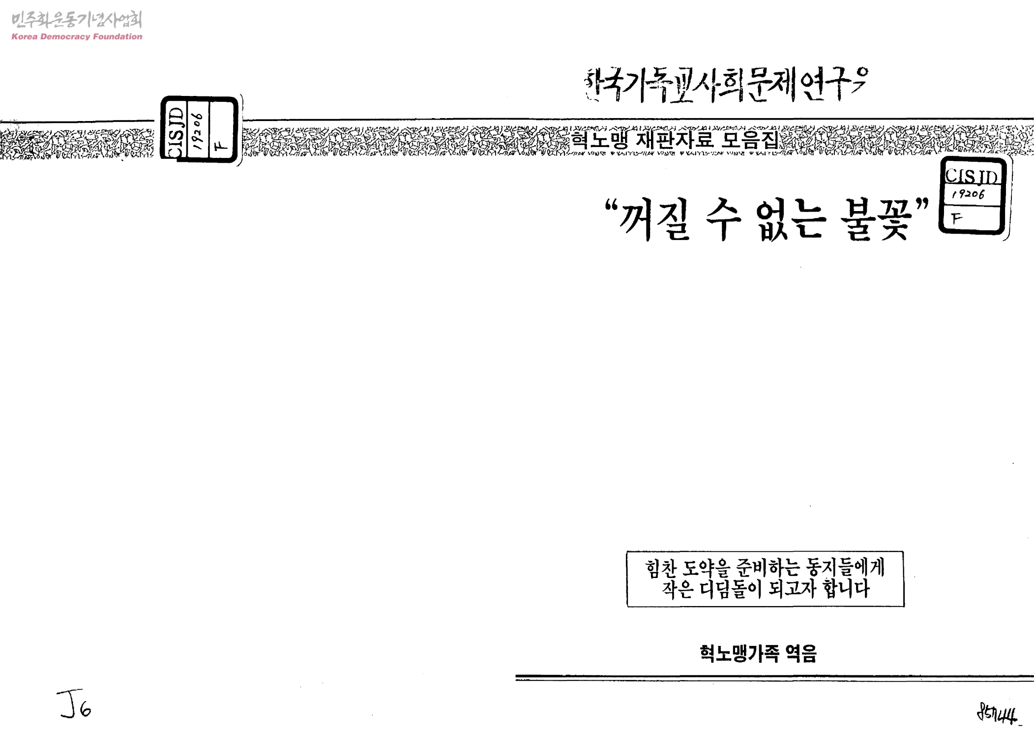 혁노맹 재판자료 모음집-꺼질 수 없는 불꽃