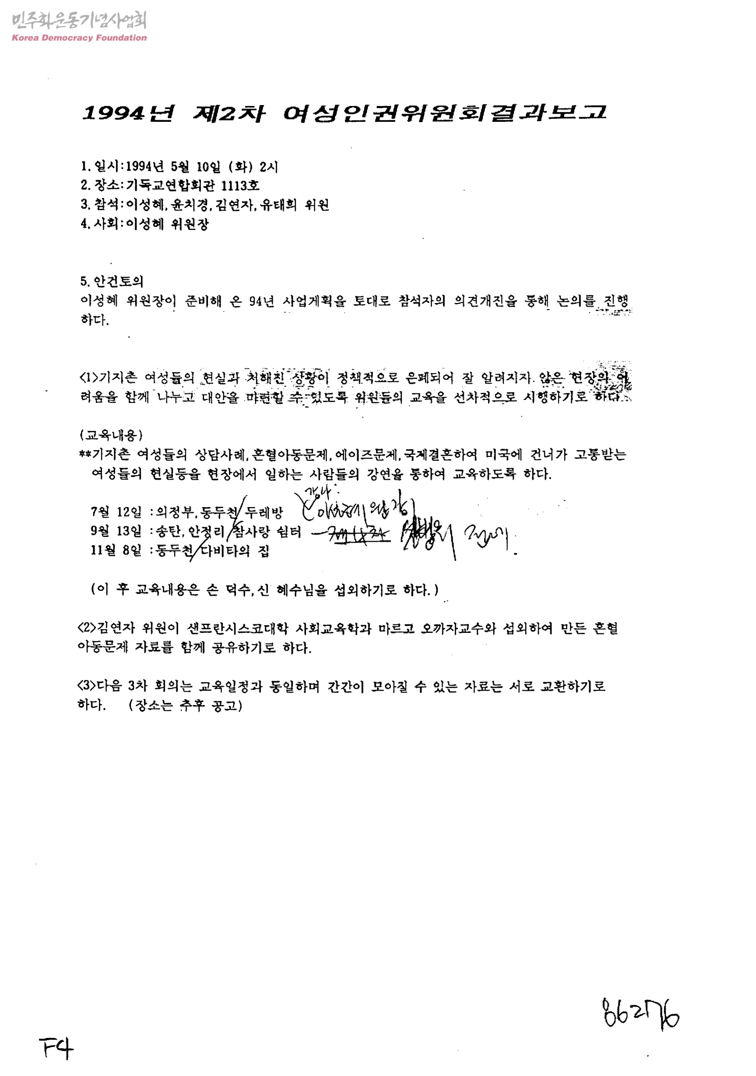 1994년 제2차 여성인권위원회결과보고
