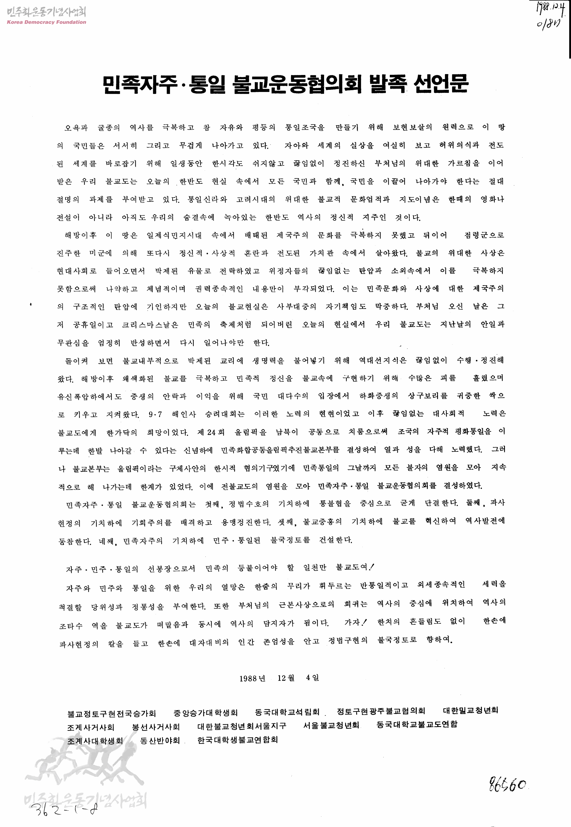 - 불교정토구현전국승가회, 중앙승가대학생회, 동국대학교석림회, 정토구현광주불교협의회, 대한밀교청년회, 조계사거사회, 봉선사거사회, 대한불교청년회서울지구, 서울불교청년회, 동국대학교불교도연합, 조계사대학생회, 동산반야회, 한국대학생불교연합회