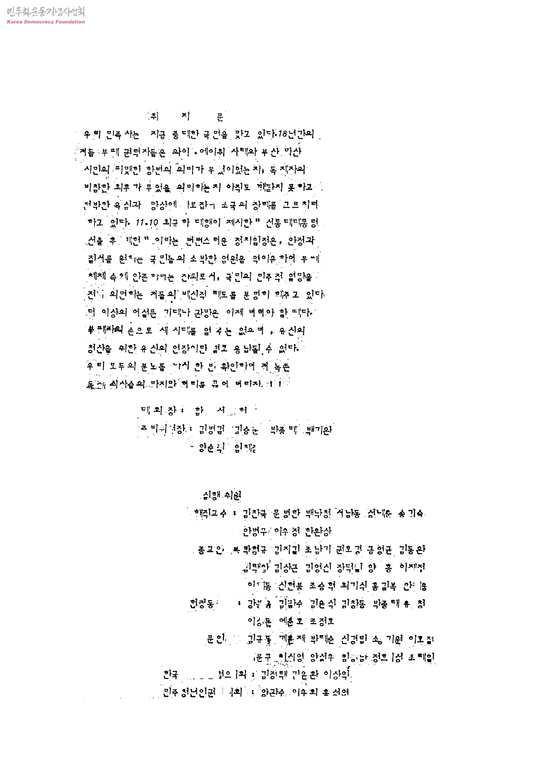 - 생산자 및 기증자가 ‘박용수’인 사진의 사용은 구매신청을 클릭하여 직접 사진 구매 신청을 하실 수 있습니다. 생산자 및 기증자가 ‘경향신문사’인 사진의 사용은 경향신문사 담당자(02-3701-1635)를 통해 구매하실 수 있습니다. 그 외의 생산자 및 기증자는 민주화운동기념사업회 사료관 담당자( hyunchaek@kdemo.or.kr / 02-6440-8961 )에 문의바랍니다.