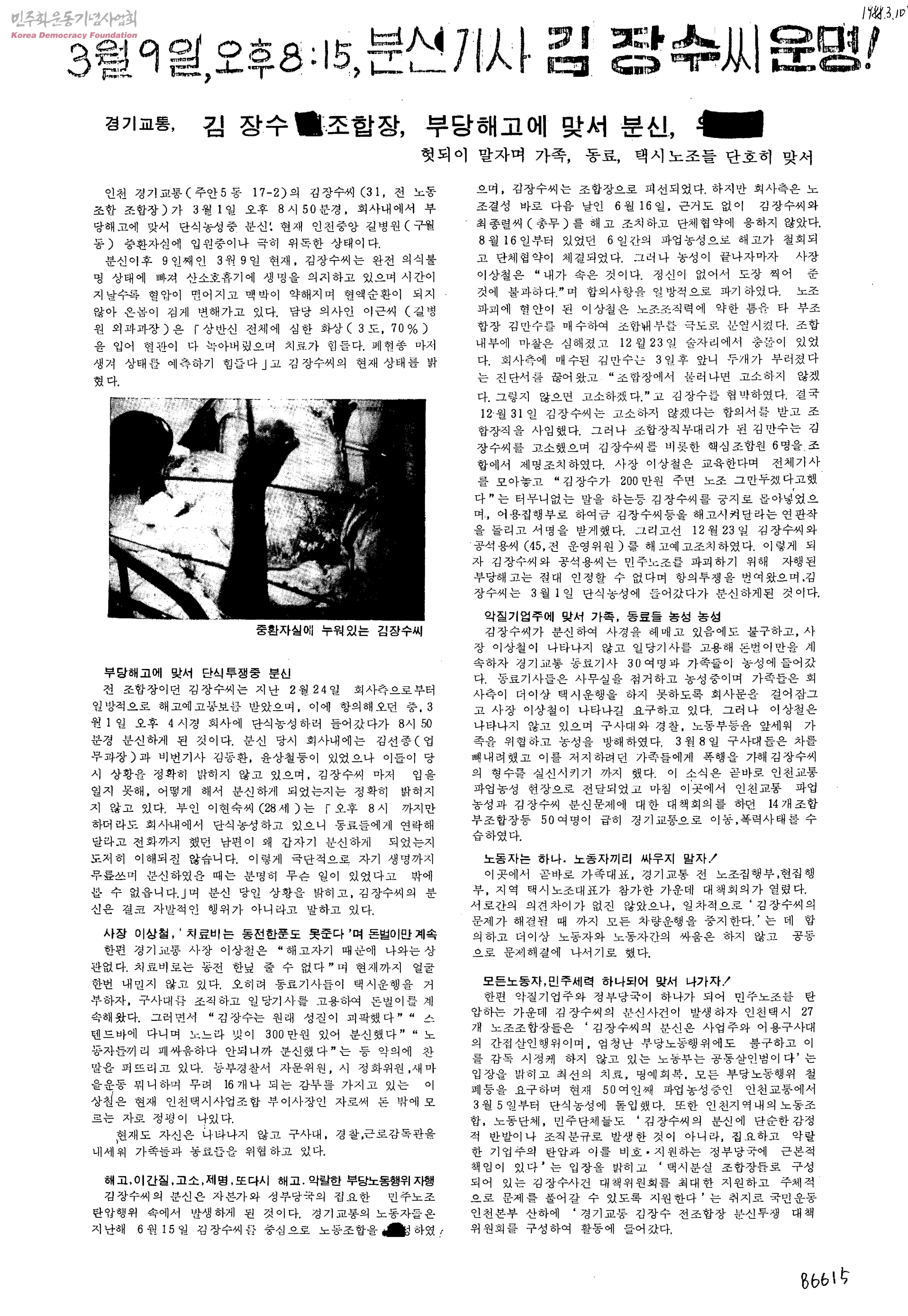 - 민주쟁취국민운동인천본부, 경기교통김장수조합장분신투쟁대책위