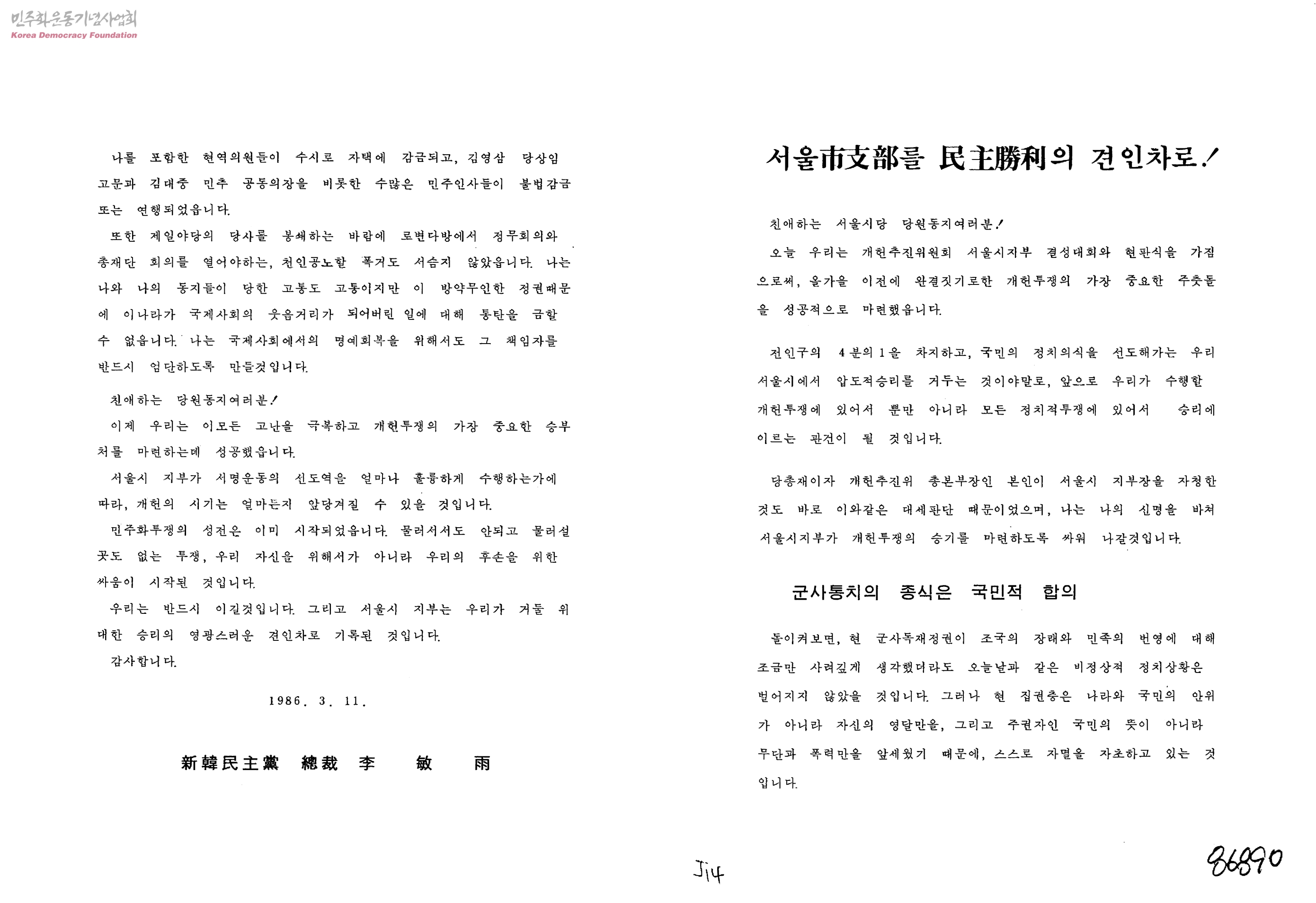 - 신한민주당총재 李敏雨