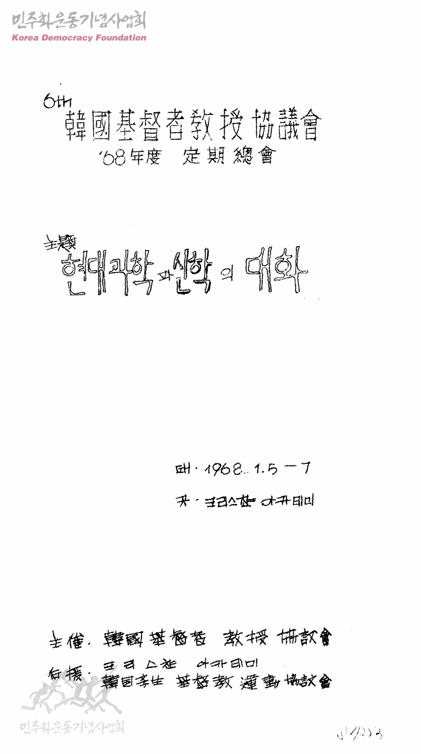 6th 韓國基督者敎授協議會 '68年度 定期總會-主題:현대과학과 신학의 대화