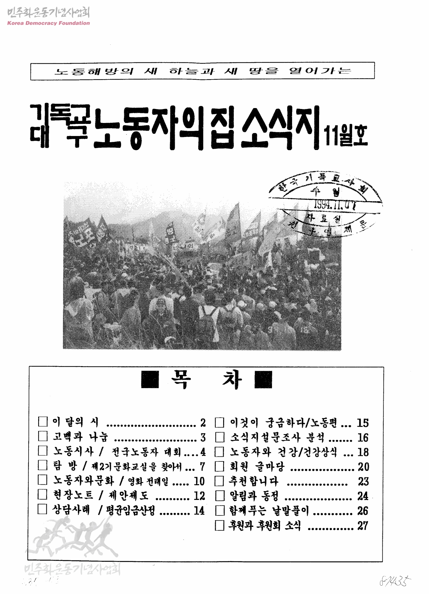 기독교대구노동자의집소식지 1994년 11월호 통권25호