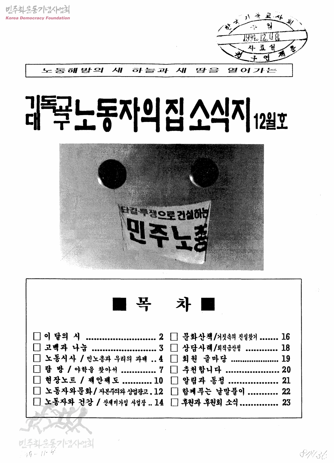 기독교대구노동자의집소식지 1994년 12월호 통권26호