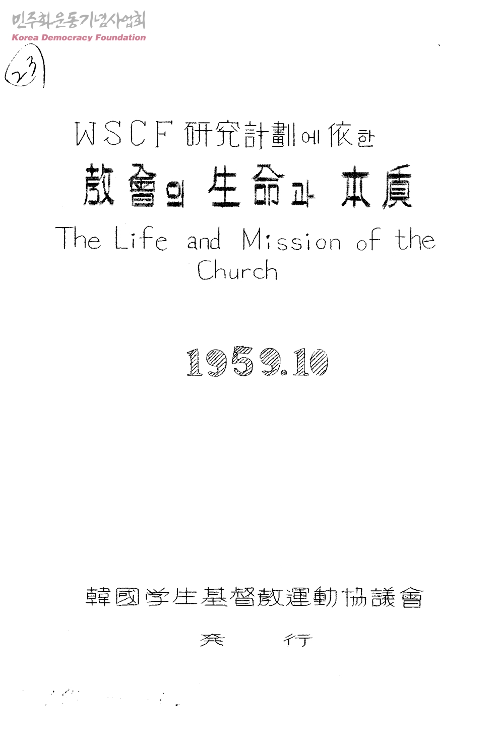 WSCF 硏究計劃에 依한 敎會의 生命의 本質