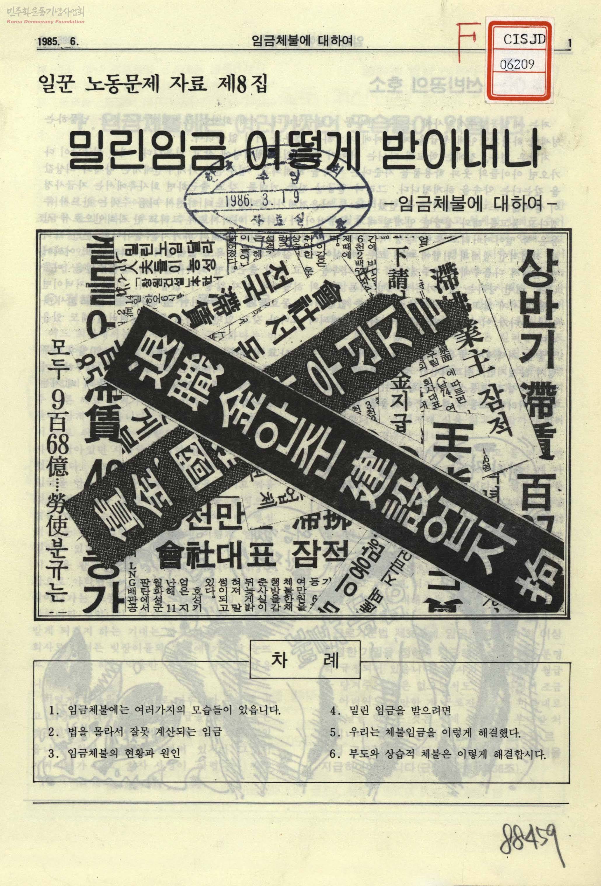일꾼 노동문제 자료 제8집-밀린임금 어떻게 받아내나-임금체불에 대하여-