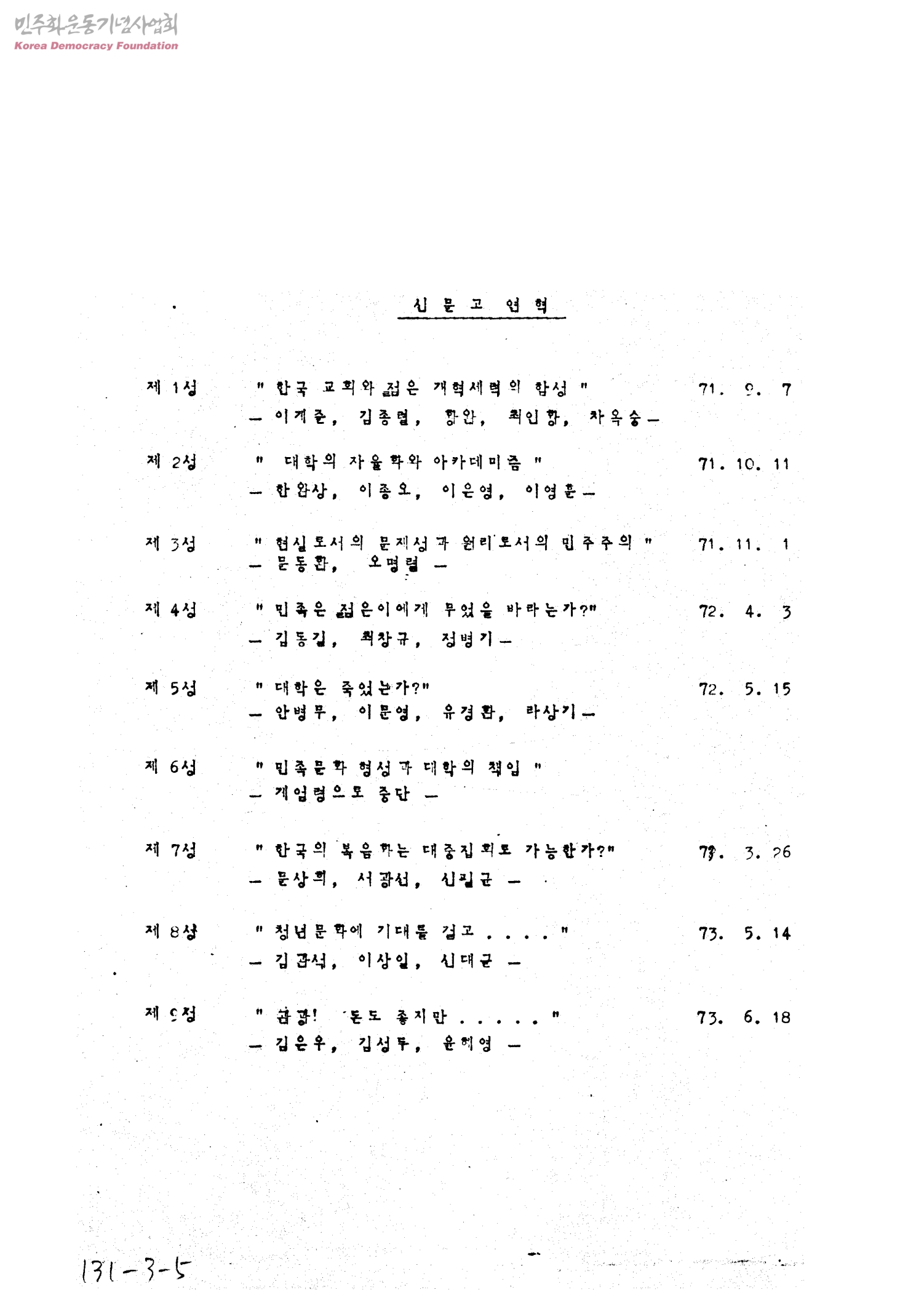 - 신문고 제1성~신문고 제14성 첨부:KSCF 신문고 제4성[행사안내장], 한국기독학생회총연맹(KSCF), 1972-04-03
