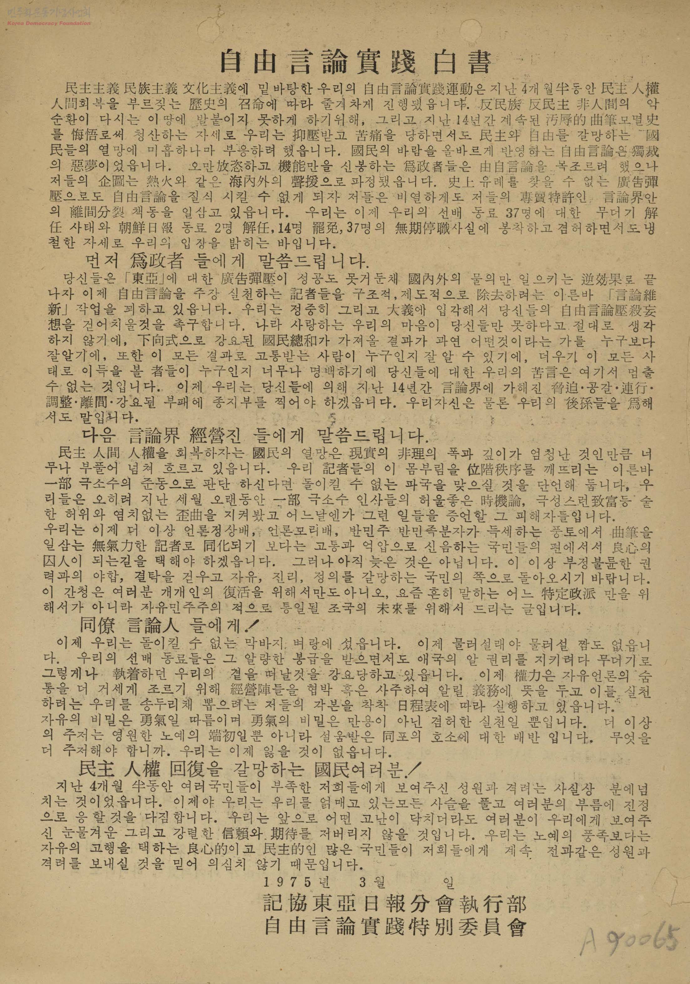 - 記協東亞日報分會執行部自由言論實踐特別委員會