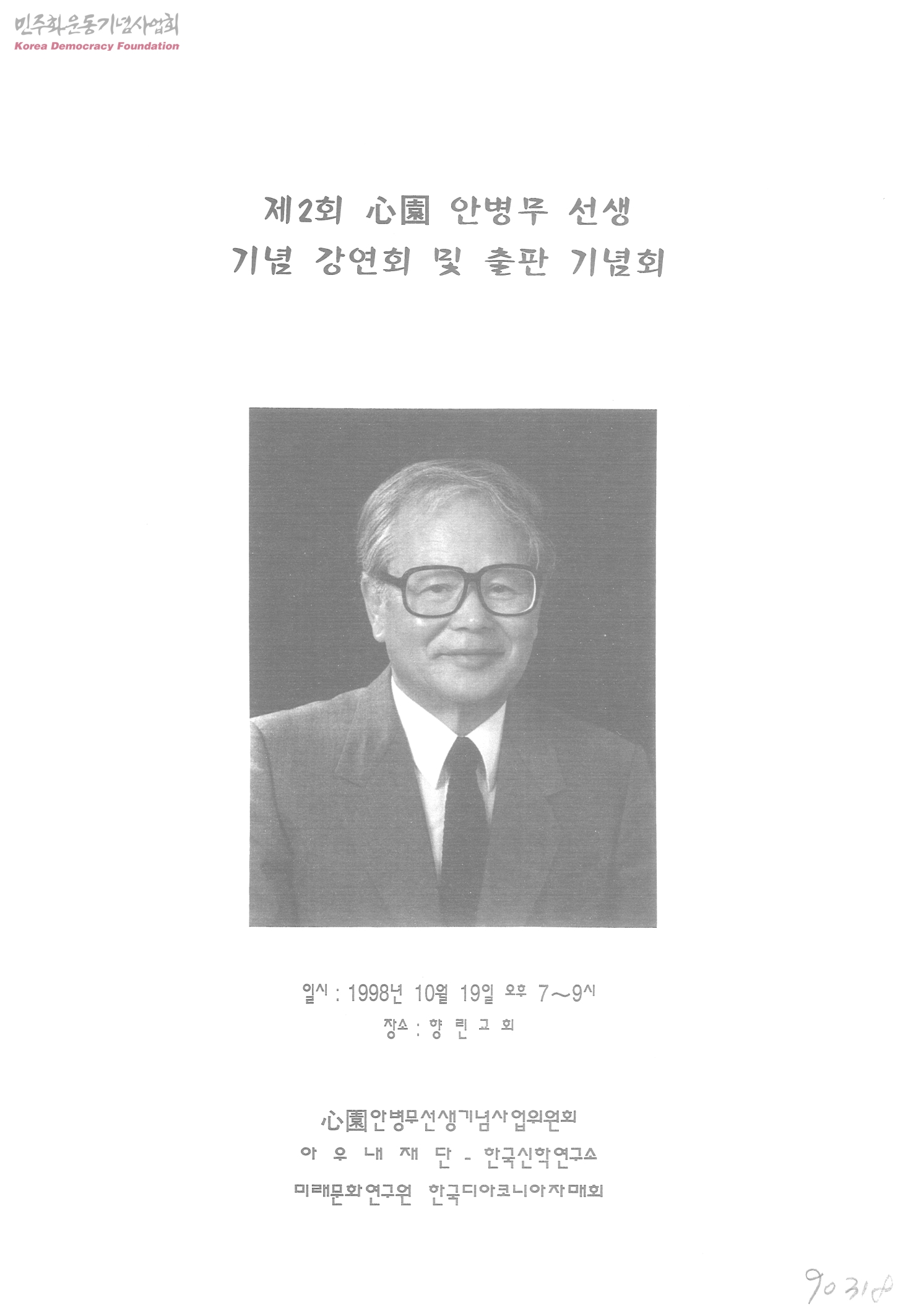 - 心園안병무선생기념사업위원회, 아우내재단-한국신학연구소, 미래문화연구원 한국디아코니아자매회