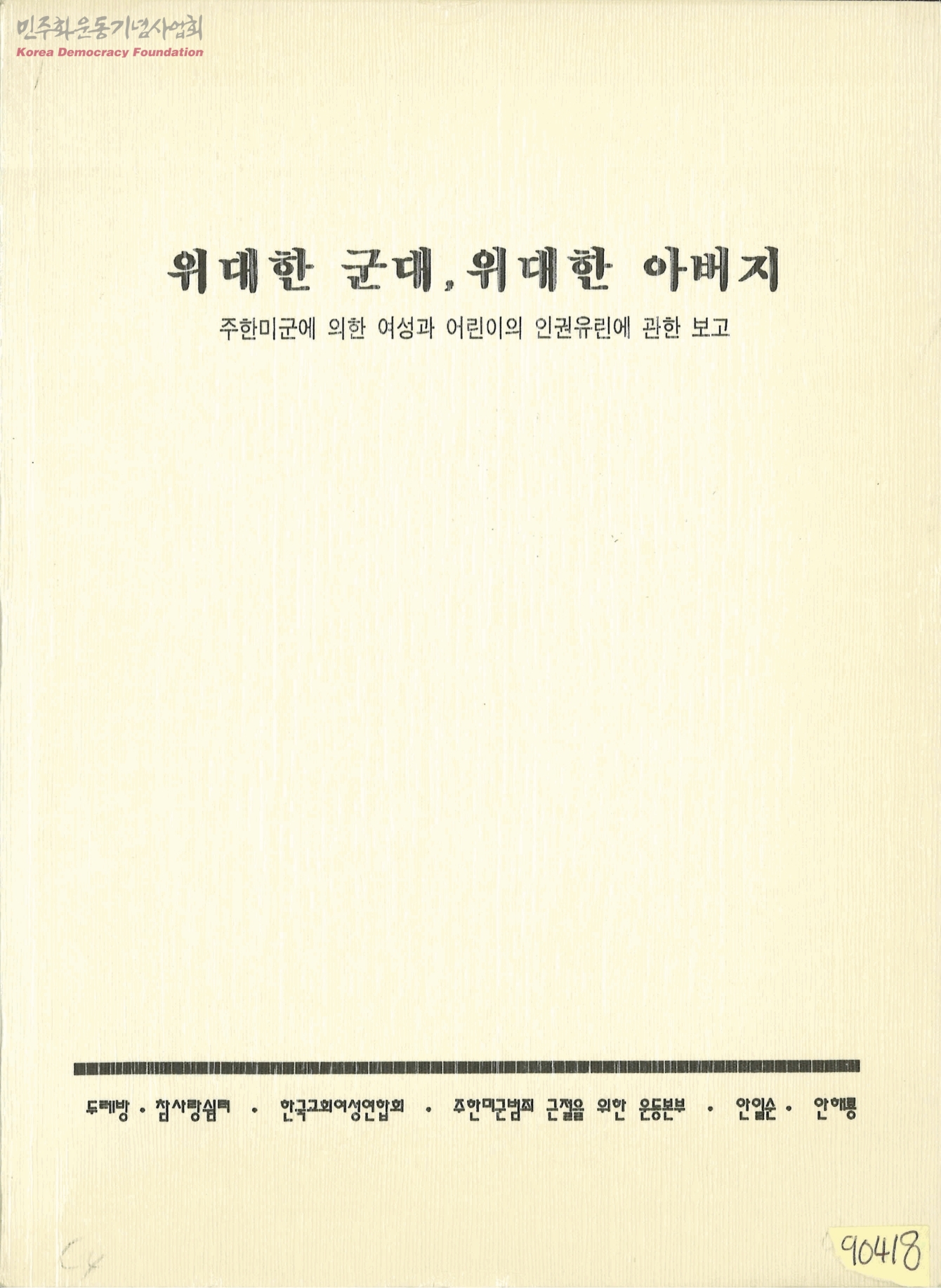 위대한 군대, 위대한 아버지-주한미군에 의한 여성과 어린이의 인권유린에 관한 보고