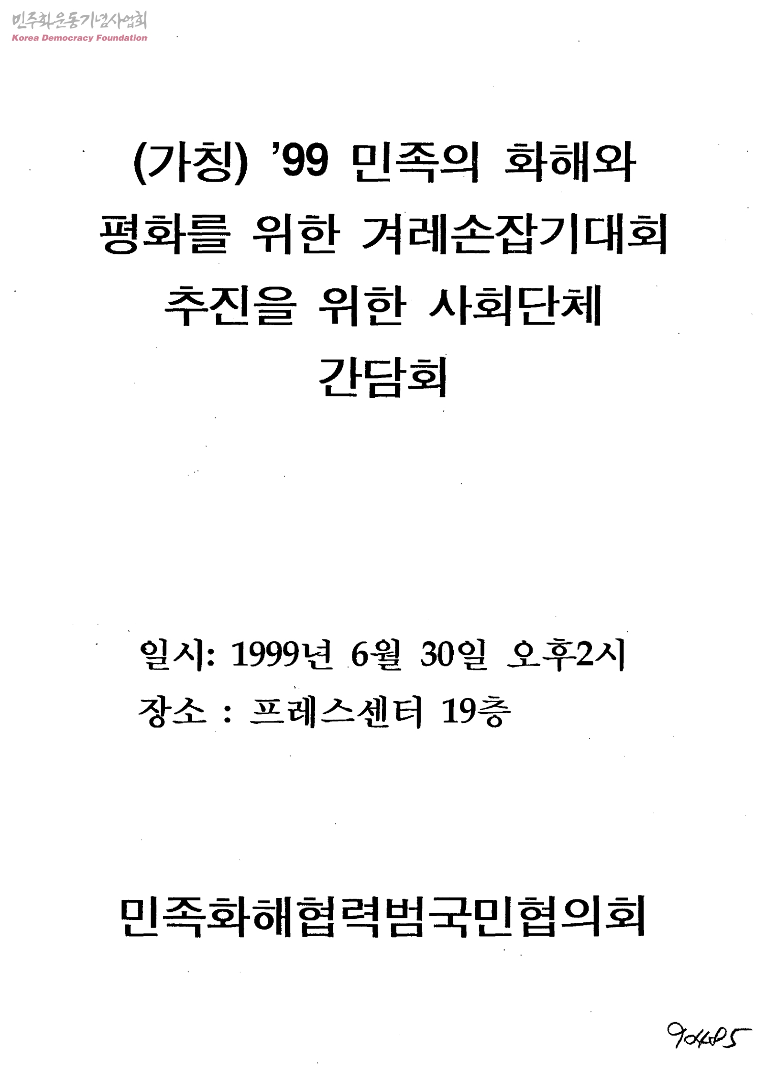 (가칭) '99 민족의 화해와 평화를 위한 겨레손잡기대회 추진을 위한 사회단체 간담회