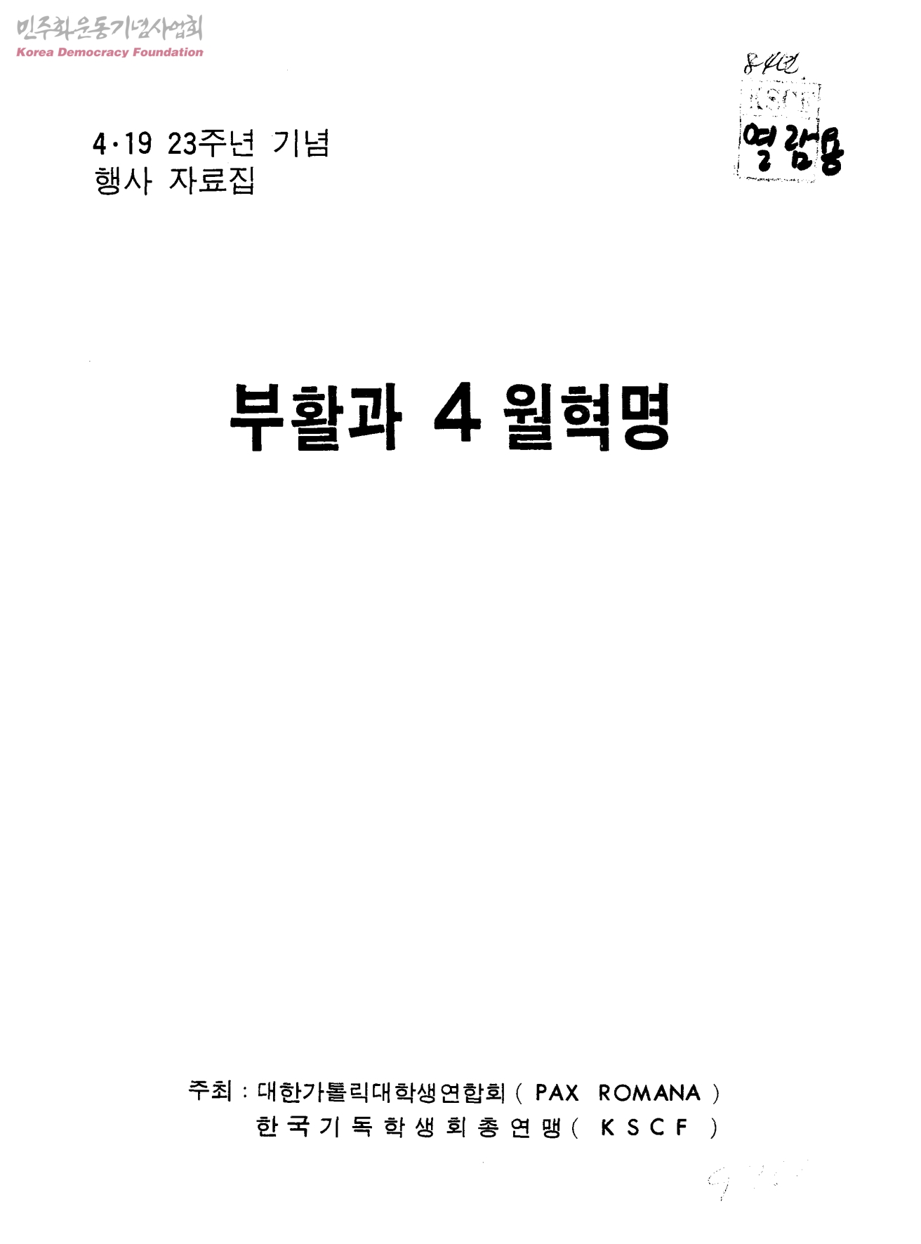 4ㆍ19 23주년 기념 행사 자료집 부활과 4월혁명