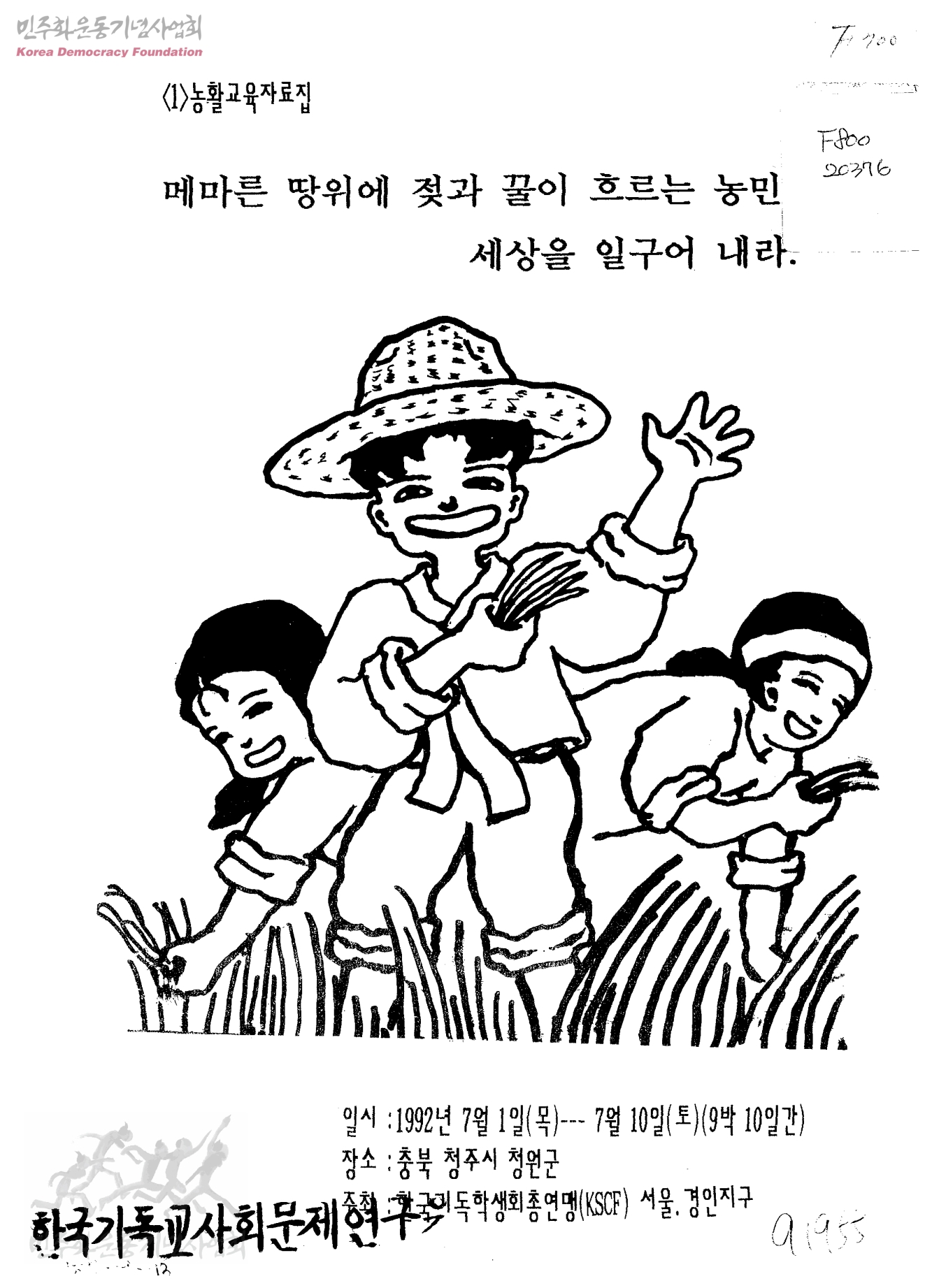 농활 분반교육및 풍물학교 자료집(1)-메마른 땅위에 젖과 꿀이 흐르는 농민 세상을 일구어 내라